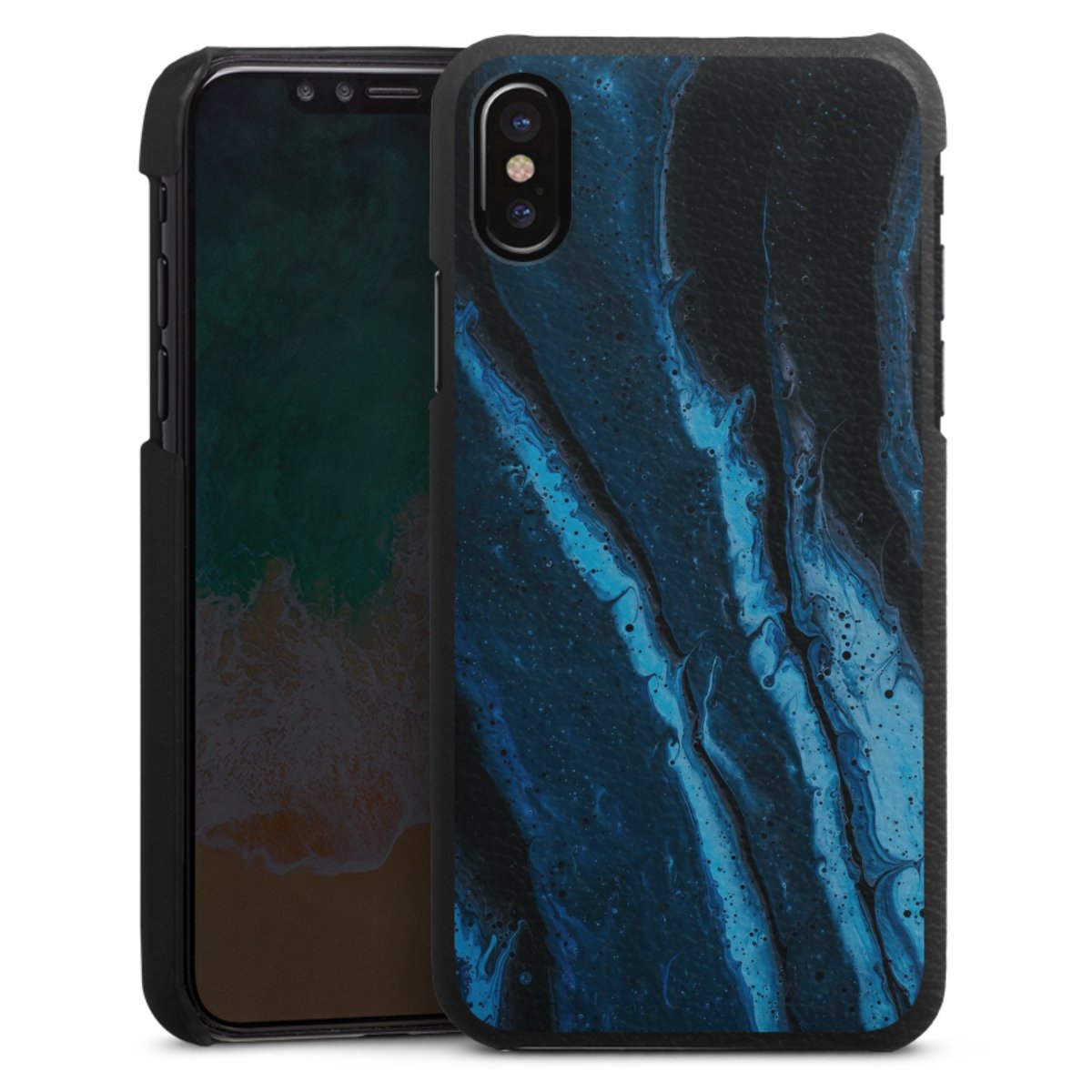 Die handgefertigte Handyhülle besteht außen aus hochwertigen Echtleder-Fasern, die Innenseite besteht aus stabilem Polycarbonat mit einer edlen Softtouch Beschichtung. Durch die Lederstruktur auf der Außenseite liegt das zeitlose Modell griffig in der Hand. Die Handyhülle ist in den Farben Schwarz, Weiß und Braun erhältlich.