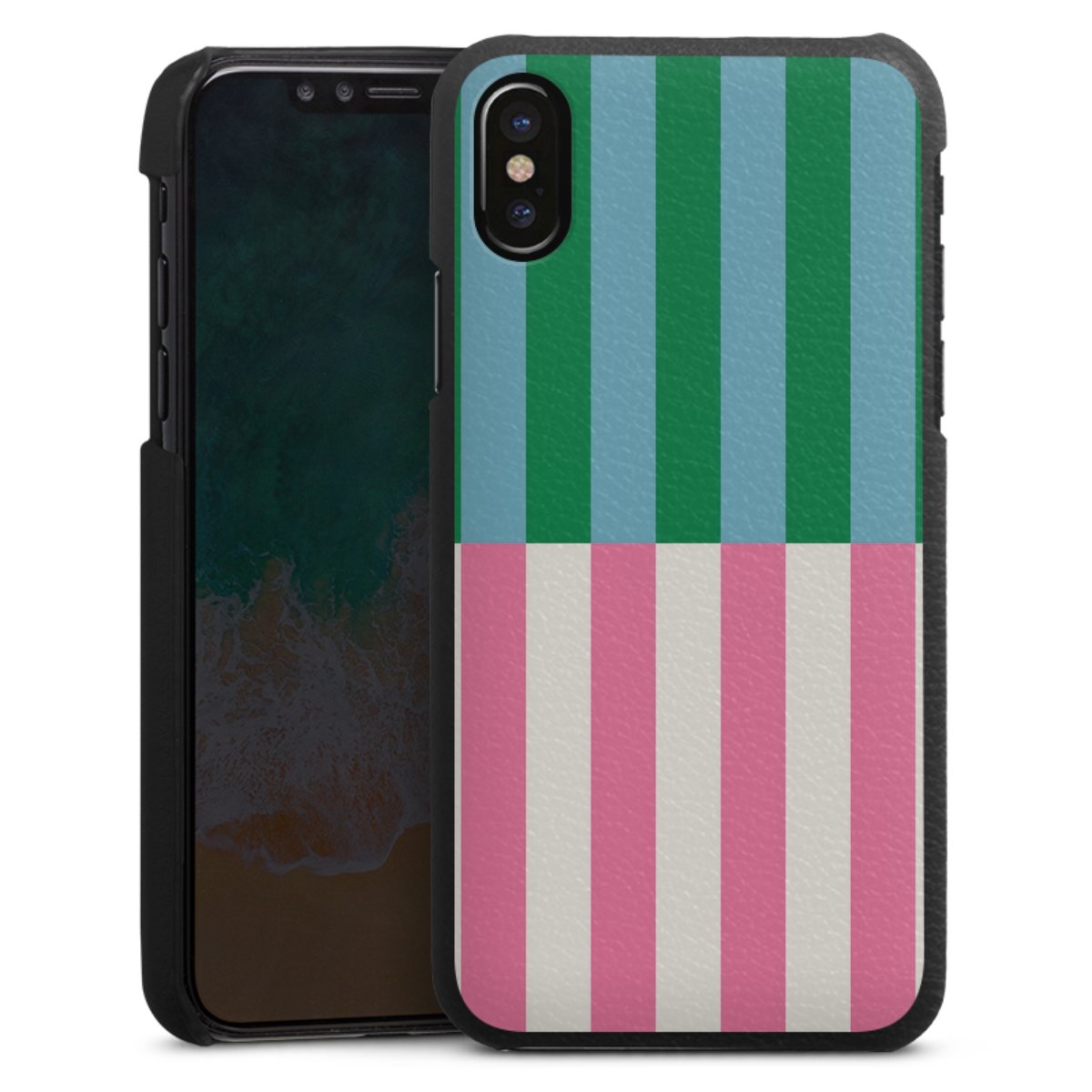Die handgefertigte Handyhülle besteht außen aus hochwertigen Echtleder-Fasern, die Innenseite besteht aus stabilem Polycarbonat mit einer edlen Softtouch Beschichtung. Durch die Lederstruktur auf der Außenseite liegt das zeitlose Modell griffig in der Hand. Die Handyhülle ist in den Farben Schwarz, Weiß und Braun erhältlich.