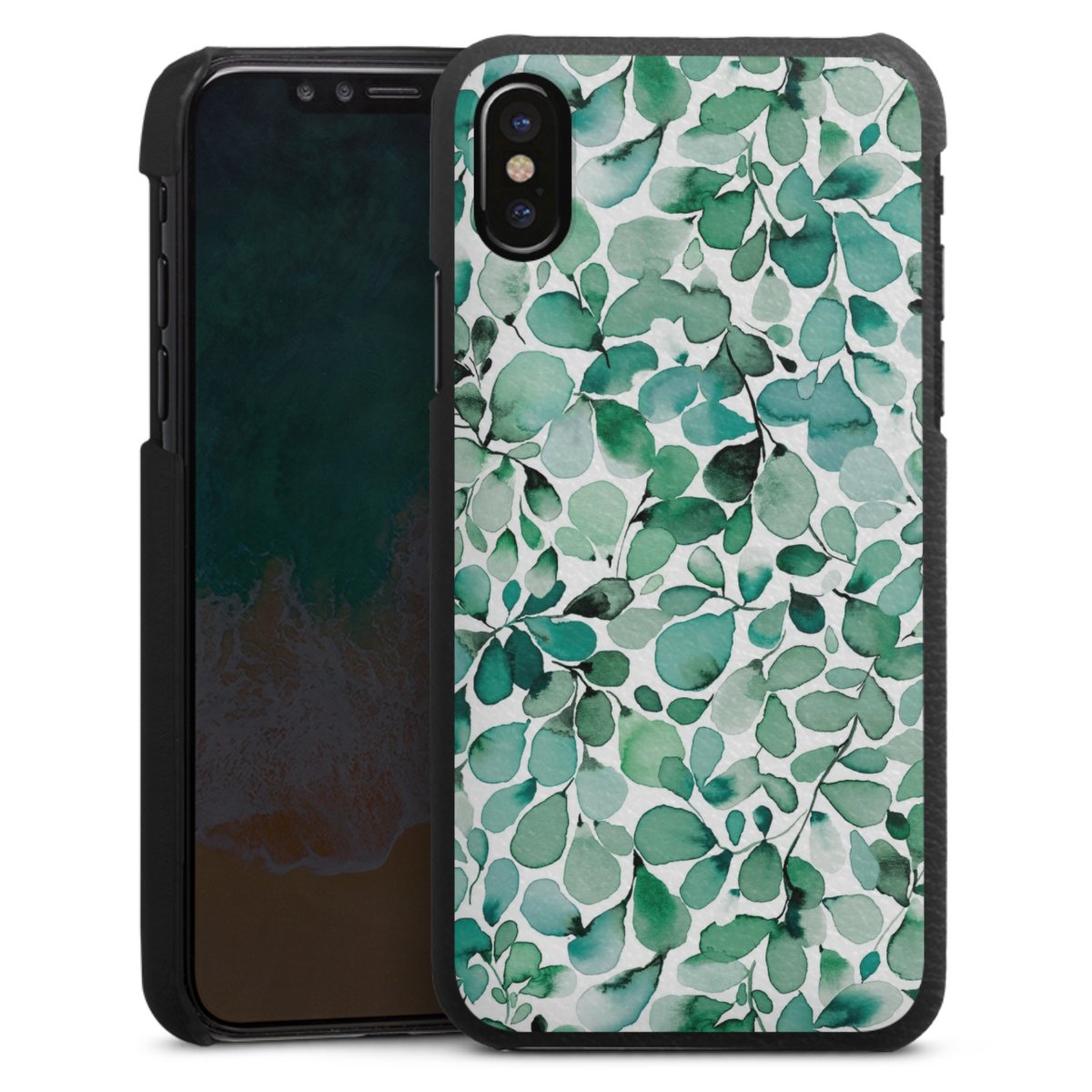 Die handgefertigte Handyhülle besteht außen aus hochwertigen Echtleder-Fasern, die Innenseite besteht aus stabilem Polycarbonat mit einer edlen Softtouch Beschichtung. Durch die Lederstruktur auf der Außenseite liegt das zeitlose Modell griffig in der Hand. Die Handyhülle ist in den Farben Schwarz, Weiß und Braun erhältlich.