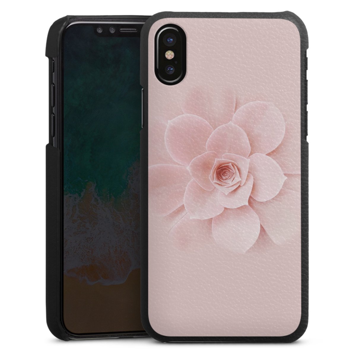 Die handgefertigte Handyhülle besteht außen aus hochwertigen Echtleder-Fasern, die Innenseite besteht aus stabilem Polycarbonat mit einer edlen Softtouch Beschichtung. Durch die Lederstruktur auf der Außenseite liegt das zeitlose Modell griffig in der Hand. Die Handyhülle ist in den Farben Schwarz, Weiß und Braun erhältlich.