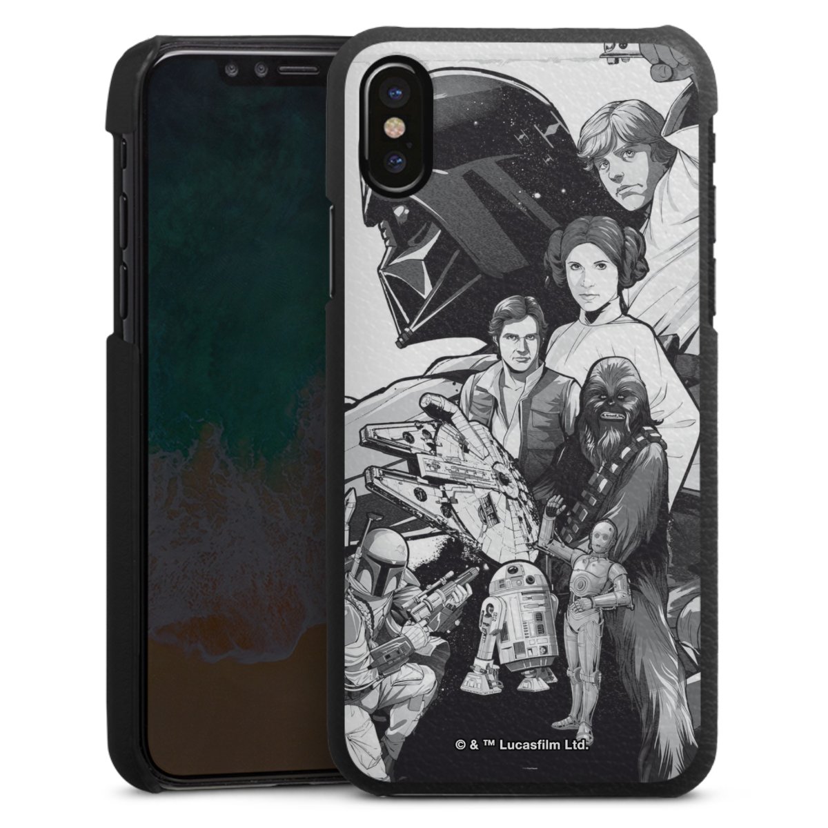 Darth Vader, C3PO, R2D2 und Meister Yoda findest Du in unserem Star Wars Shop auf DeinDesign. Natürlich gibt es auch Star Wars Handyhüllen mit den legendären Charakteren Luke Skywalker, Prinzessin Leia und Han Solo, den Helden der ersten Saga. Wer jedoch die Hauptfiguren der neuen Star Wars Filme ins Herz geschlossen hat, kann auch Finn und Rey mit ihren mächtigen Waffen auf der Rückseite seines Smartphones haben. Die vielseitigen Schutzhüllen in verschiedenen Ausführungen sind das perfekte Geschenk für alle Star Wars Fans, die ihrem Smartphone eine individuelle Note verleihen wollen.