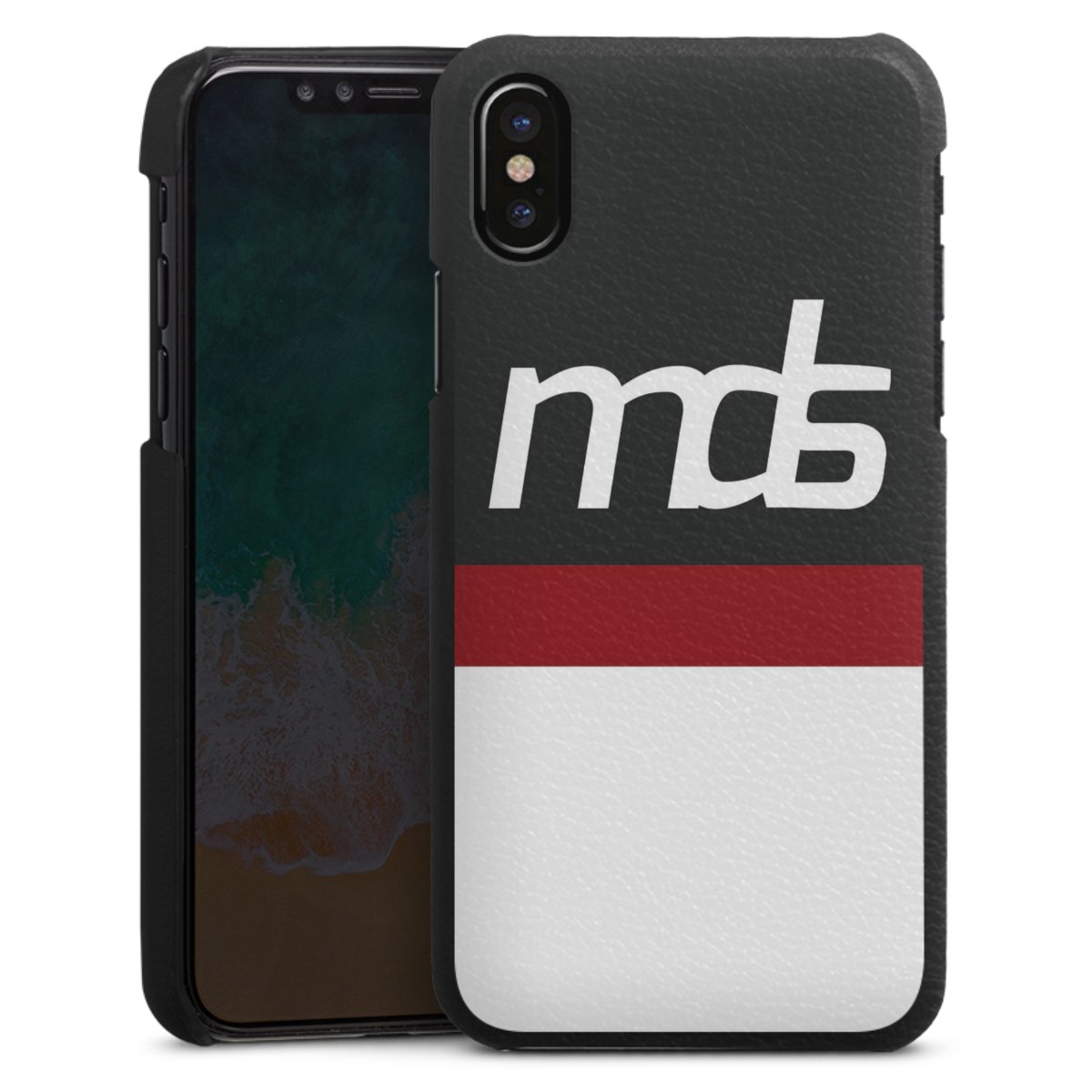Die handgefertigte Handyhülle besteht außen aus hochwertigen Echtleder-Fasern, die Innenseite besteht aus stabilem Polycarbonat mit einer edlen Softtouch Beschichtung. Durch die Lederstruktur auf der Außenseite liegt das zeitlose Modell griffig in der Hand. Die Handyhülle ist in den Farben Schwarz, Weiß und Braun erhältlich.