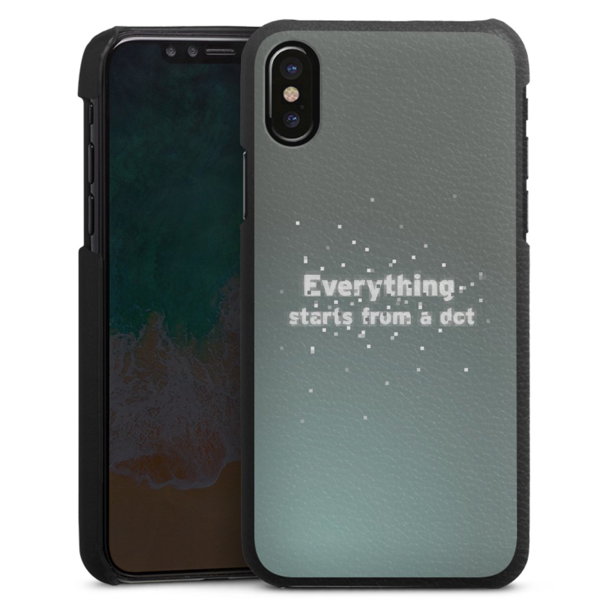 Die handgefertigte Handyhülle besteht außen aus hochwertigen Echtleder-Fasern, die Innenseite besteht aus stabilem Polycarbonat mit einer edlen Softtouch Beschichtung. Durch die Lederstruktur auf der Außenseite liegt das zeitlose Modell griffig in der Hand. Die Handyhülle ist in den Farben Schwarz, Weiß und Braun erhältlich.