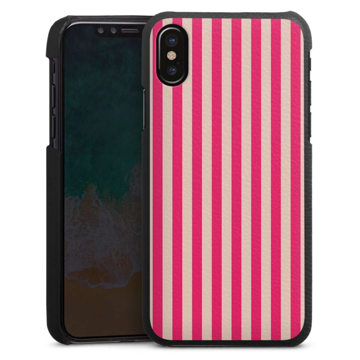 Die handgefertigte Handyhülle besteht außen aus hochwertigen Echtleder-Fasern, die Innenseite besteht aus stabilem Polycarbonat mit einer edlen Softtouch Beschichtung. Durch die Lederstruktur auf der Außenseite liegt das zeitlose Modell griffig in der Hand. Die Handyhülle ist in den Farben Schwarz, Weiß und Braun erhältlich.