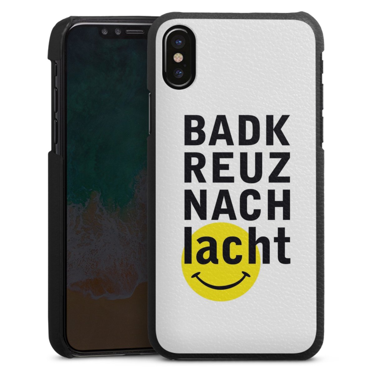 Die handgefertigte Handyhülle besteht außen aus hochwertigen Echtleder-Fasern, die Innenseite besteht aus stabilem Polycarbonat mit einer edlen Softtouch Beschichtung. Durch die Lederstruktur auf der Außenseite liegt das zeitlose Modell griffig in der Hand. Die Handyhülle ist in den Farben Schwarz, Weiß und Braun erhältlich.