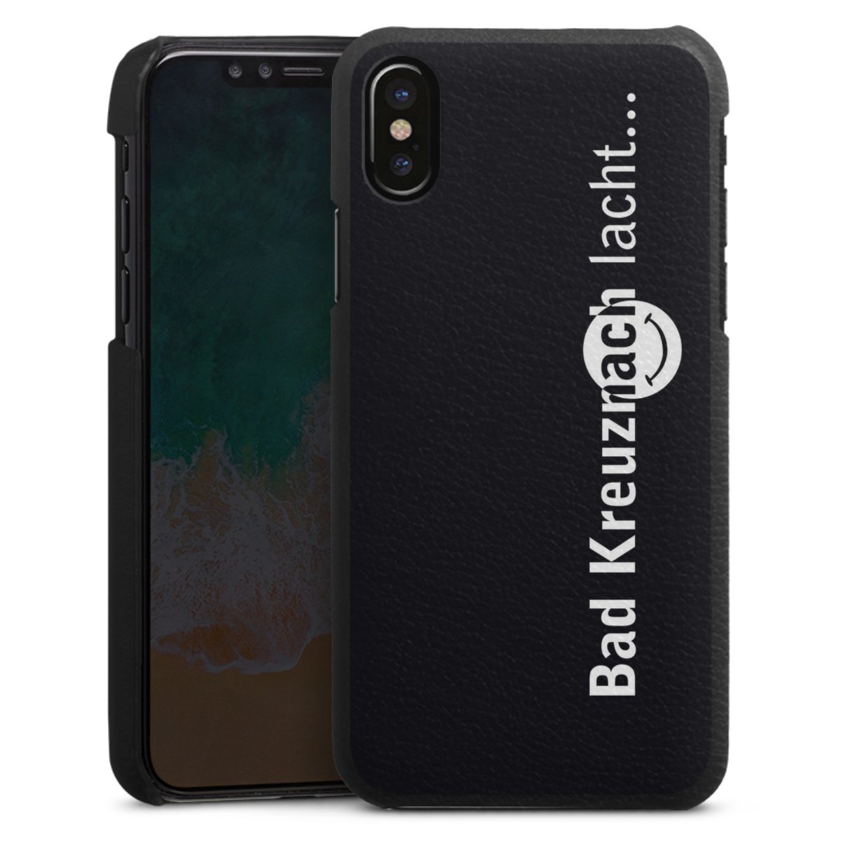 Die handgefertigte Handyhülle besteht außen aus hochwertigen Echtleder-Fasern, die Innenseite besteht aus stabilem Polycarbonat mit einer edlen Softtouch Beschichtung. Durch die Lederstruktur auf der Außenseite liegt das zeitlose Modell griffig in der Hand. Die Handyhülle ist in den Farben Schwarz, Weiß und Braun erhältlich.