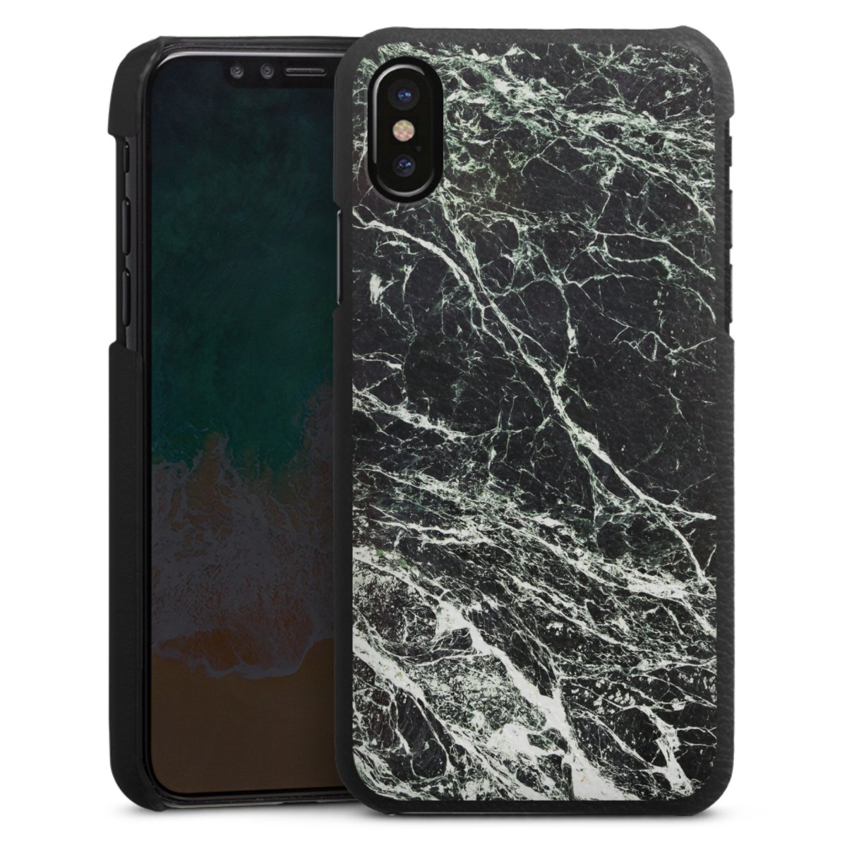 Die handgefertigte Handyhülle besteht außen aus hochwertigen Echtleder-Fasern, die Innenseite besteht aus stabilem Polycarbonat mit einer edlen Softtouch Beschichtung. Durch die Lederstruktur auf der Außenseite liegt das zeitlose Modell griffig in der Hand. Die Handyhülle ist in den Farben Schwarz, Weiß und Braun erhältlich.