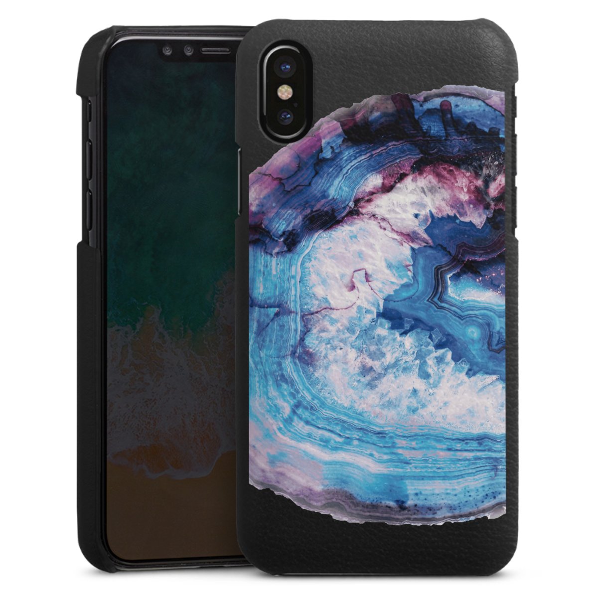 Die handgefertigte Handyhülle besteht außen aus hochwertigen Echtleder-Fasern, die Innenseite besteht aus stabilem Polycarbonat mit einer edlen Softtouch Beschichtung. Durch die Lederstruktur auf der Außenseite liegt das zeitlose Modell griffig in der Hand. Die Handyhülle ist in den Farben Schwarz, Weiß und Braun erhältlich.
