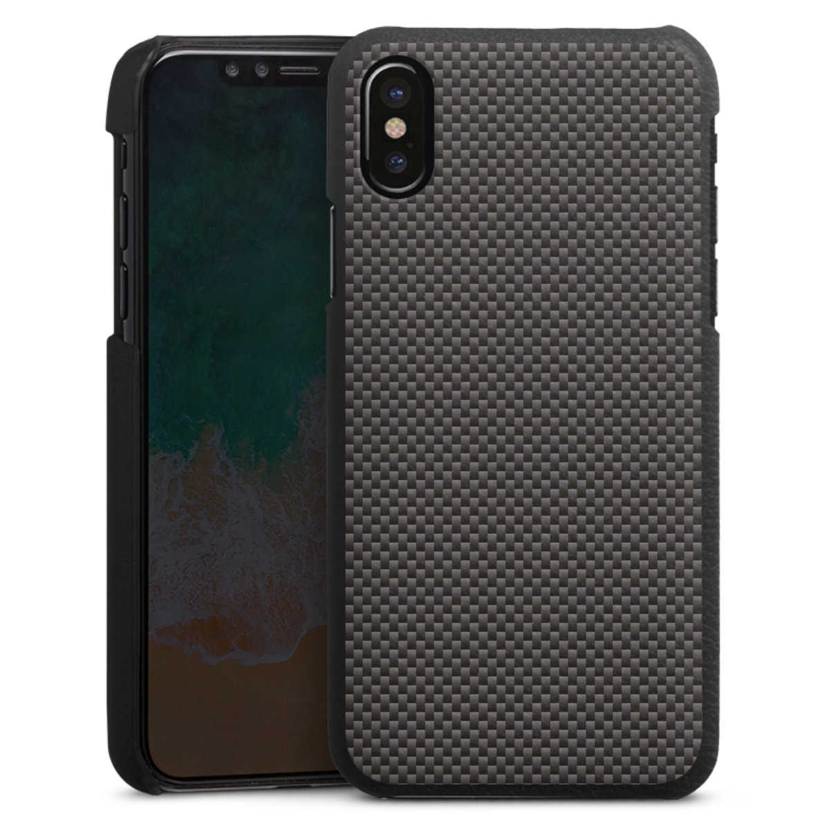 Die handgefertigte Handyhülle besteht außen aus hochwertigen Echtleder-Fasern, die Innenseite besteht aus stabilem Polycarbonat mit einer edlen Softtouch Beschichtung. Durch die Lederstruktur auf der Außenseite liegt das zeitlose Modell griffig in der Hand. Die Handyhülle ist in den Farben Schwarz, Weiß und Braun erhältlich.