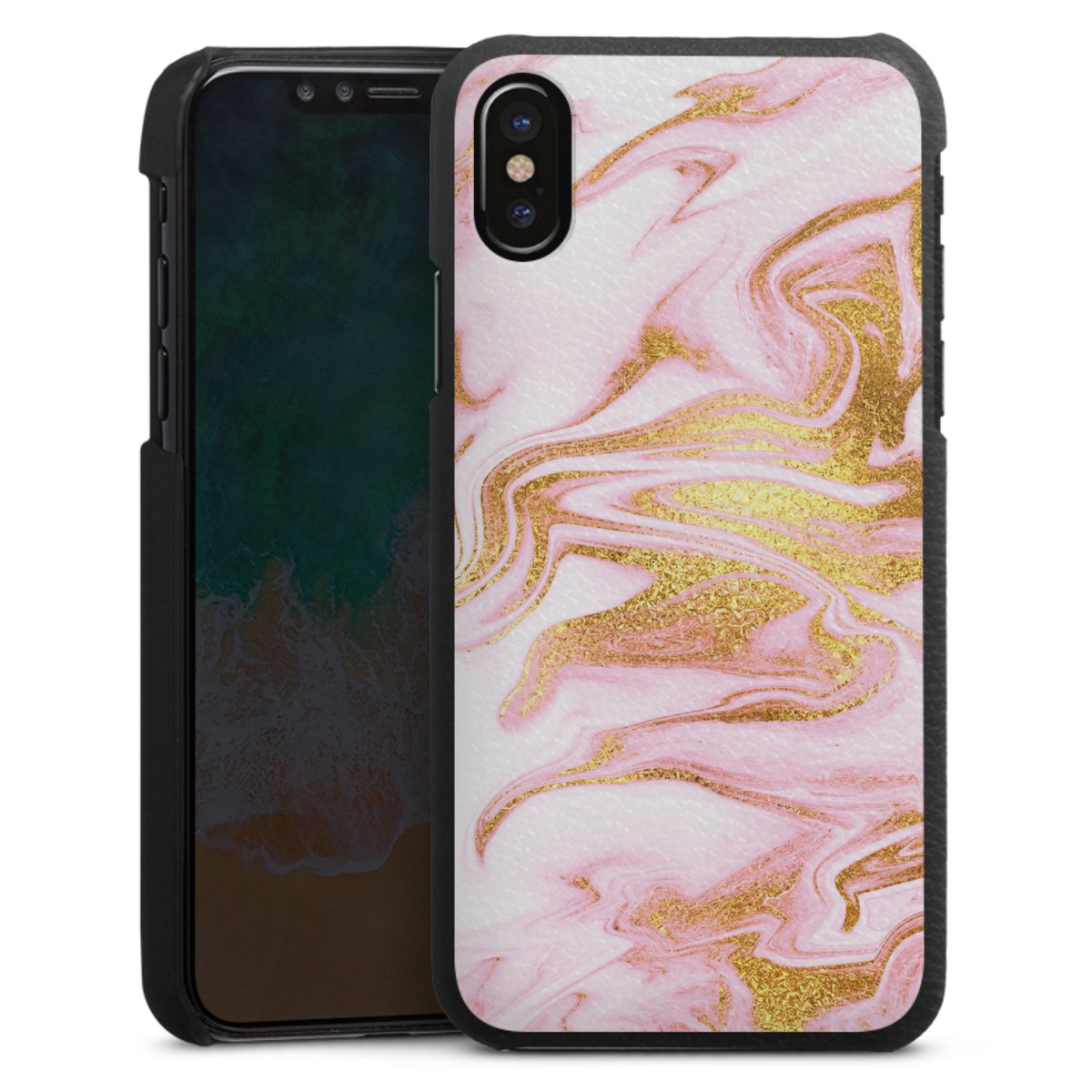 Die handgefertigte Handyhülle besteht außen aus hochwertigen Echtleder-Fasern, die Innenseite besteht aus stabilem Polycarbonat mit einer edlen Softtouch Beschichtung. Durch die Lederstruktur auf der Außenseite liegt das zeitlose Modell griffig in der Hand. Die Handyhülle ist in den Farben Schwarz, Weiß und Braun erhältlich.