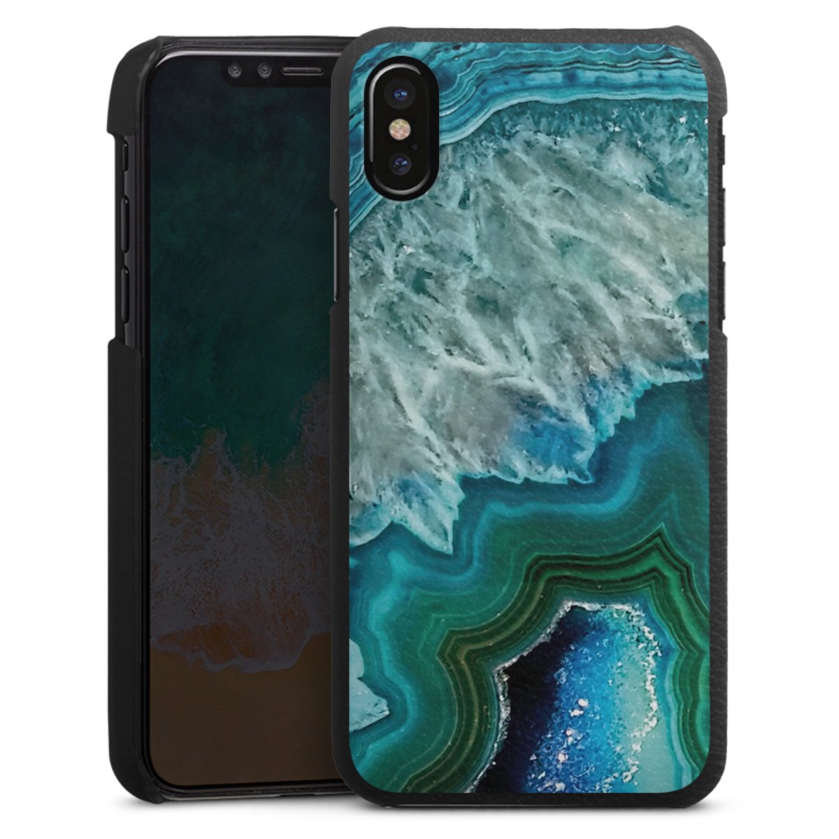 Die handgefertigte Handyhülle besteht außen aus hochwertigen Echtleder-Fasern, die Innenseite besteht aus stabilem Polycarbonat mit einer edlen Softtouch Beschichtung. Durch die Lederstruktur auf der Außenseite liegt das zeitlose Modell griffig in der Hand. Die Handyhülle ist in den Farben Schwarz, Weiß und Braun erhältlich.