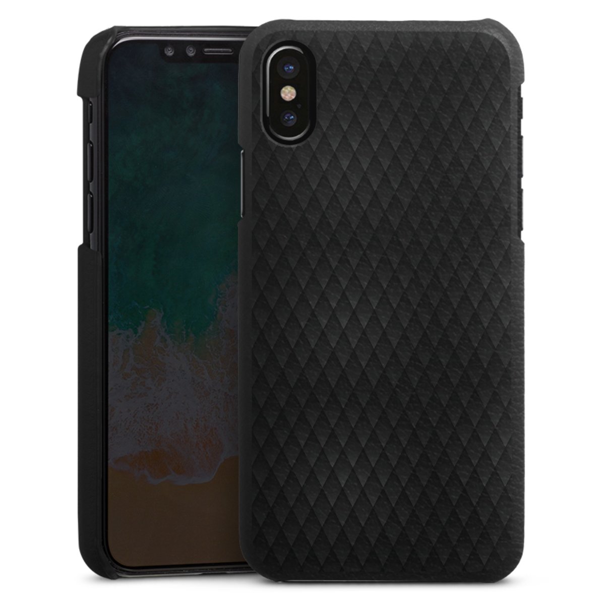 Die handgefertigte Handyhülle besteht außen aus hochwertigen Echtleder-Fasern, die Innenseite besteht aus stabilem Polycarbonat mit einer edlen Softtouch Beschichtung. Durch die Lederstruktur auf der Außenseite liegt das zeitlose Modell griffig in der Hand. Die Handyhülle ist in den Farben Schwarz, Weiß und Braun erhältlich.