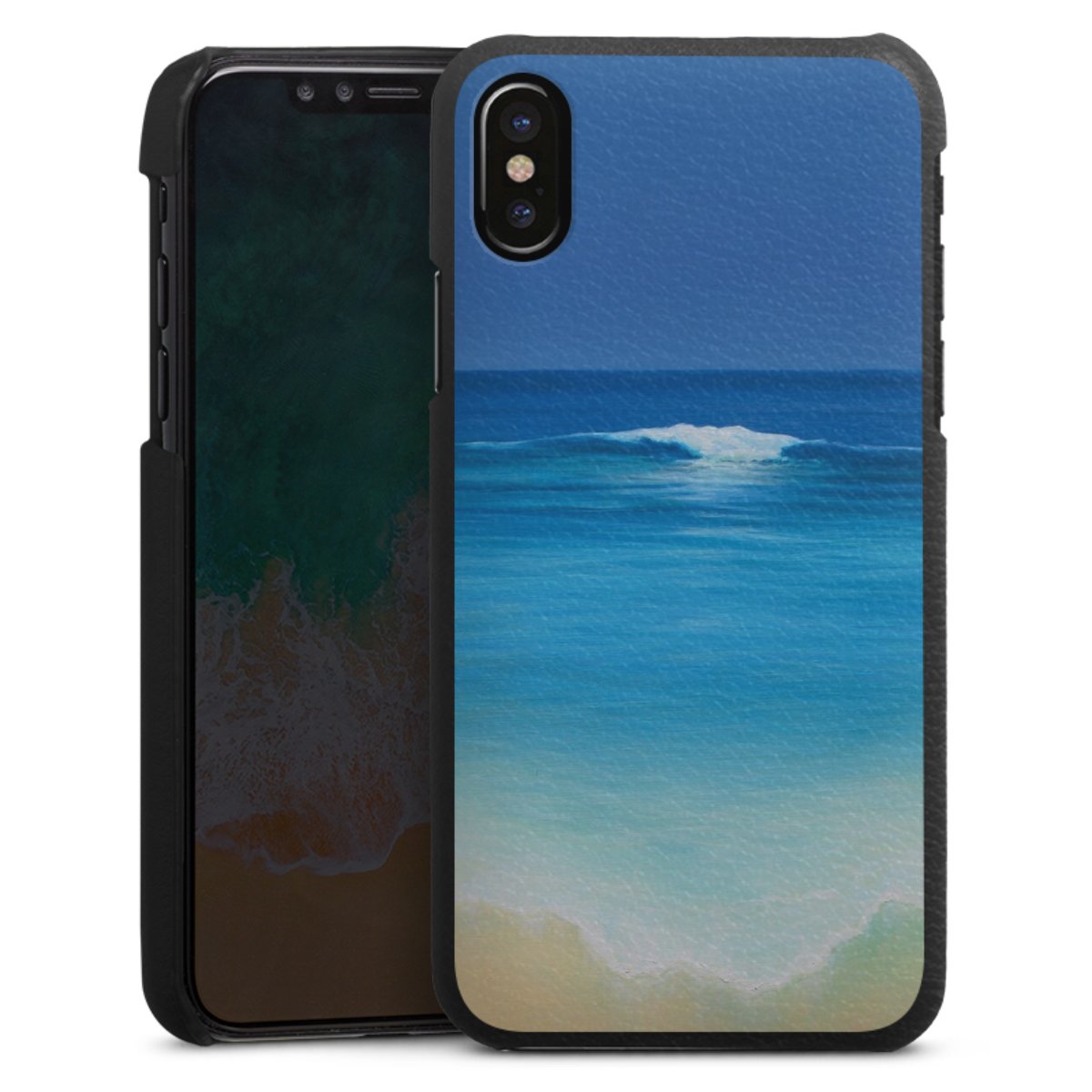 Die handgefertigte Handyhülle besteht außen aus hochwertigen Echtleder-Fasern, die Innenseite besteht aus stabilem Polycarbonat mit einer edlen Softtouch Beschichtung. Durch die Lederstruktur auf der Außenseite liegt das zeitlose Modell griffig in der Hand. Die Handyhülle ist in den Farben Schwarz, Weiß und Braun erhältlich.