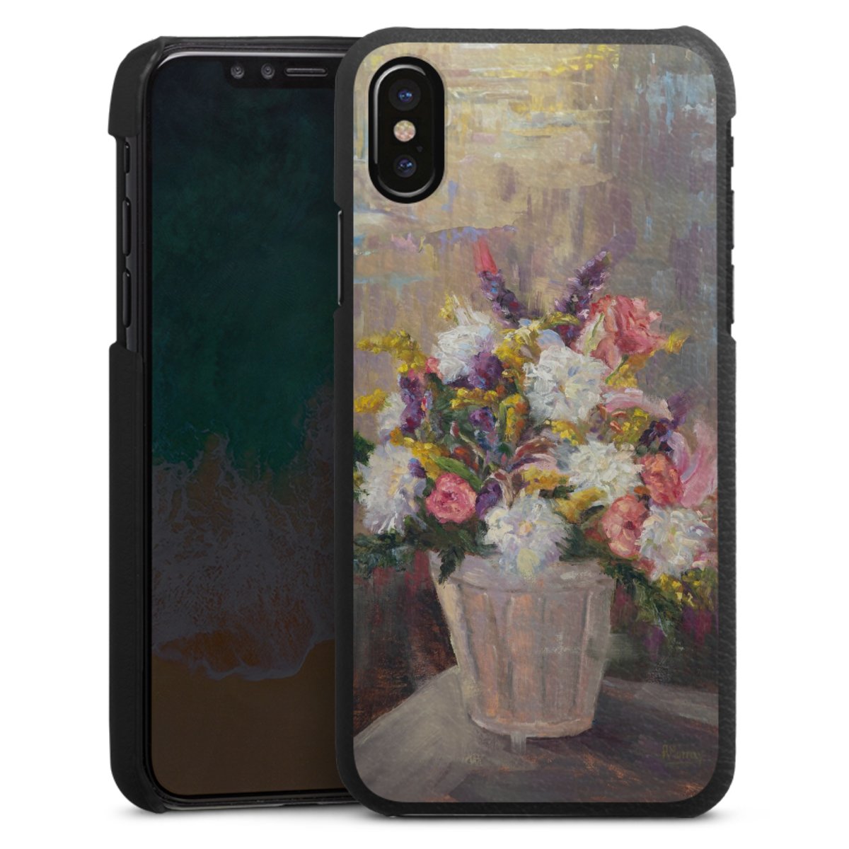 Die handgefertigte Handyhülle besteht außen aus hochwertigen Echtleder-Fasern, die Innenseite besteht aus stabilem Polycarbonat mit einer edlen Softtouch Beschichtung. Durch die Lederstruktur auf der Außenseite liegt das zeitlose Modell griffig in der Hand. Die Handyhülle ist in den Farben Schwarz, Weiß und Braun erhältlich.