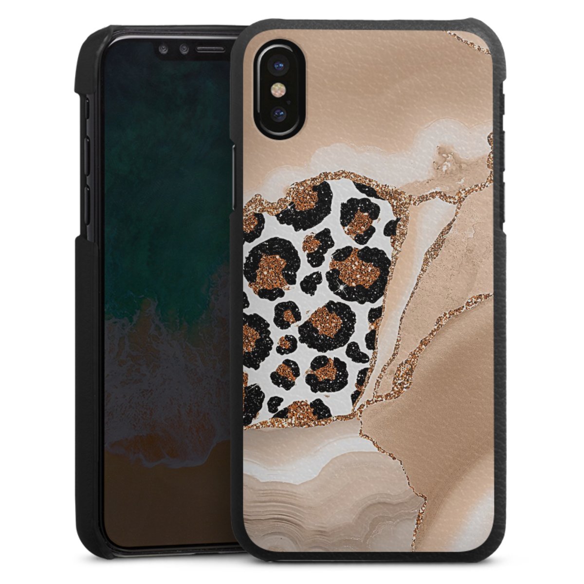Die handgefertigte Handyhülle besteht außen aus hochwertigen Echtleder-Fasern, die Innenseite besteht aus stabilem Polycarbonat mit einer edlen Softtouch Beschichtung. Durch die Lederstruktur auf der Außenseite liegt das zeitlose Modell griffig in der Hand. Die Handyhülle ist in den Farben Schwarz, Weiß und Braun erhältlich.