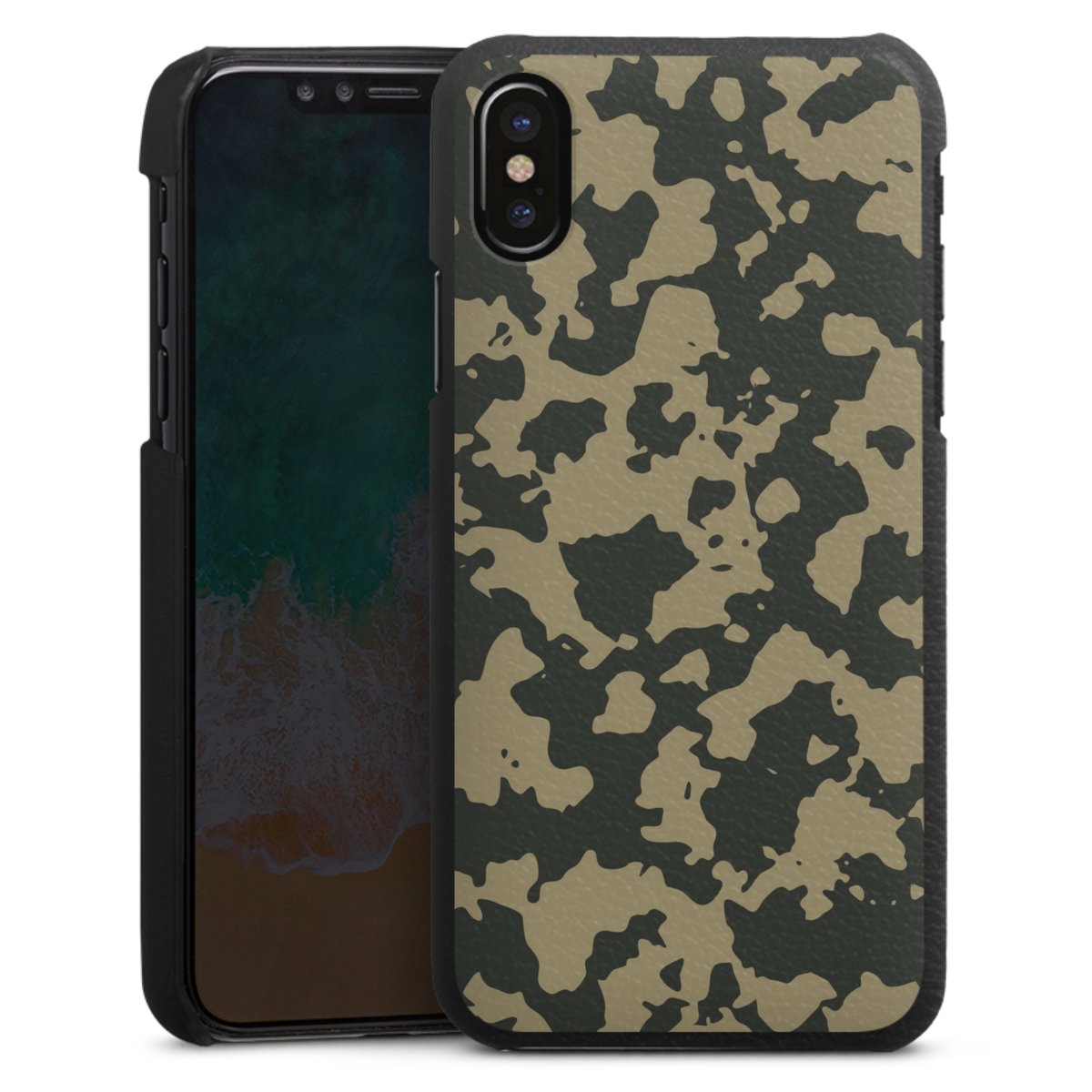 Die handgefertigte Handyhülle besteht außen aus hochwertigen Echtleder-Fasern, die Innenseite besteht aus stabilem Polycarbonat mit einer edlen Softtouch Beschichtung. Durch die Lederstruktur auf der Außenseite liegt das zeitlose Modell griffig in der Hand. Die Handyhülle ist in den Farben Schwarz, Weiß und Braun erhältlich.