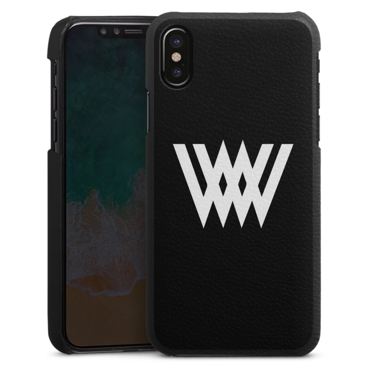 Die handgefertigte Handyhülle besteht außen aus hochwertigen Echtleder-Fasern, die Innenseite besteht aus stabilem Polycarbonat mit einer edlen Softtouch Beschichtung. Durch die Lederstruktur auf der Außenseite liegt das zeitlose Modell griffig in der Hand. Die Handyhülle ist in den Farben Schwarz, Weiß und Braun erhältlich.