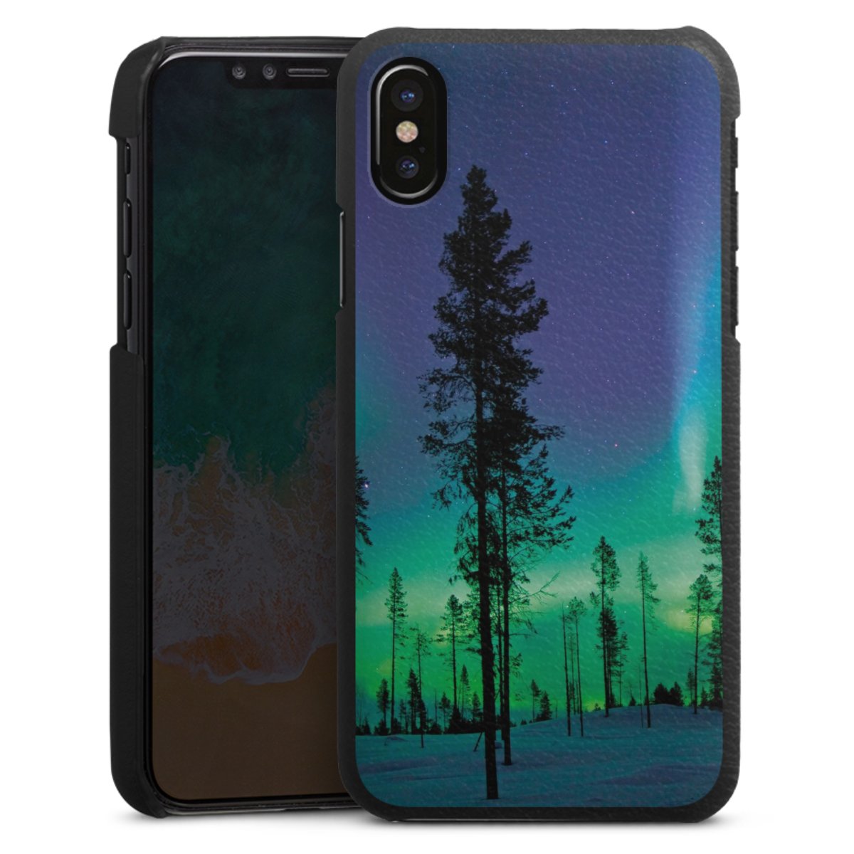 Die handgefertigte Handyhülle besteht außen aus hochwertigen Echtleder-Fasern, die Innenseite besteht aus stabilem Polycarbonat mit einer edlen Softtouch Beschichtung. Durch die Lederstruktur auf der Außenseite liegt das zeitlose Modell griffig in der Hand. Die Handyhülle ist in den Farben Schwarz, Weiß und Braun erhältlich.