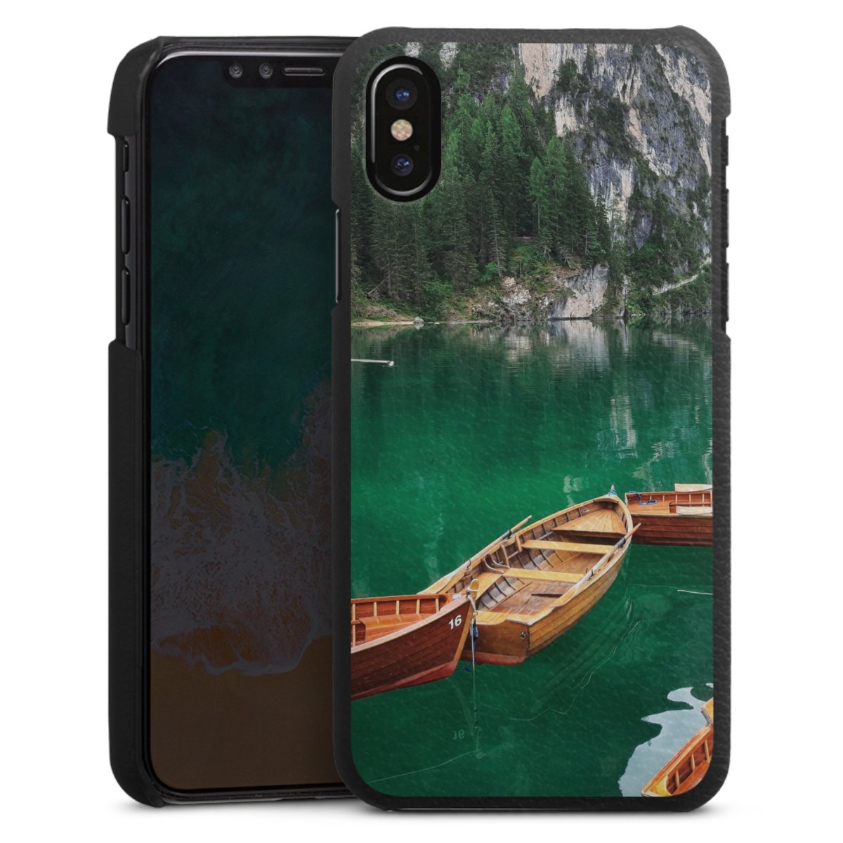 Die handgefertigte Handyhülle besteht außen aus hochwertigen Echtleder-Fasern, die Innenseite besteht aus stabilem Polycarbonat mit einer edlen Softtouch Beschichtung. Durch die Lederstruktur auf der Außenseite liegt das zeitlose Modell griffig in der Hand. Die Handyhülle ist in den Farben Schwarz, Weiß und Braun erhältlich.