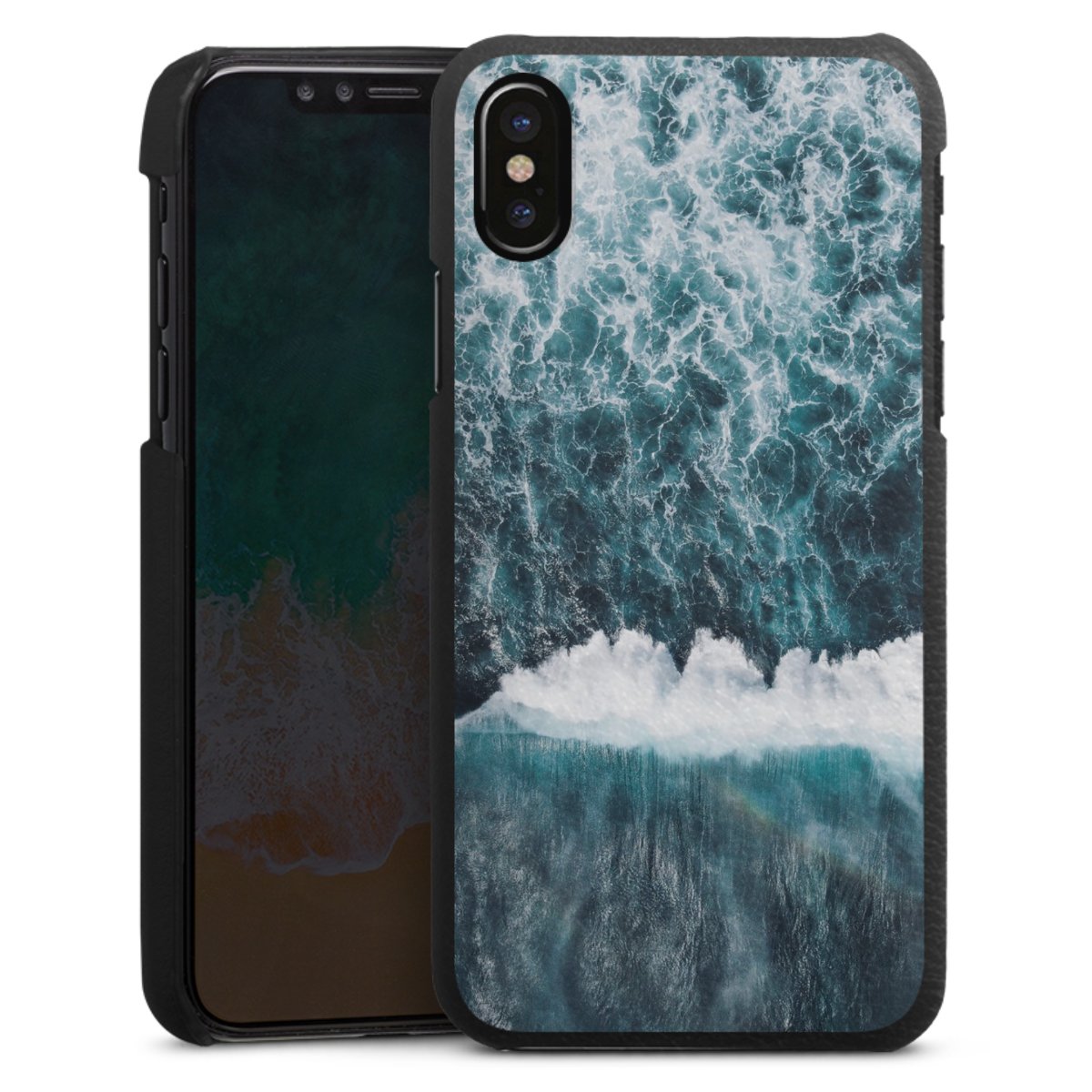 Die handgefertigte Handyhülle besteht außen aus hochwertigen Echtleder-Fasern, die Innenseite besteht aus stabilem Polycarbonat mit einer edlen Softtouch Beschichtung. Durch die Lederstruktur auf der Außenseite liegt das zeitlose Modell griffig in der Hand. Die Handyhülle ist in den Farben Schwarz, Weiß und Braun erhältlich.