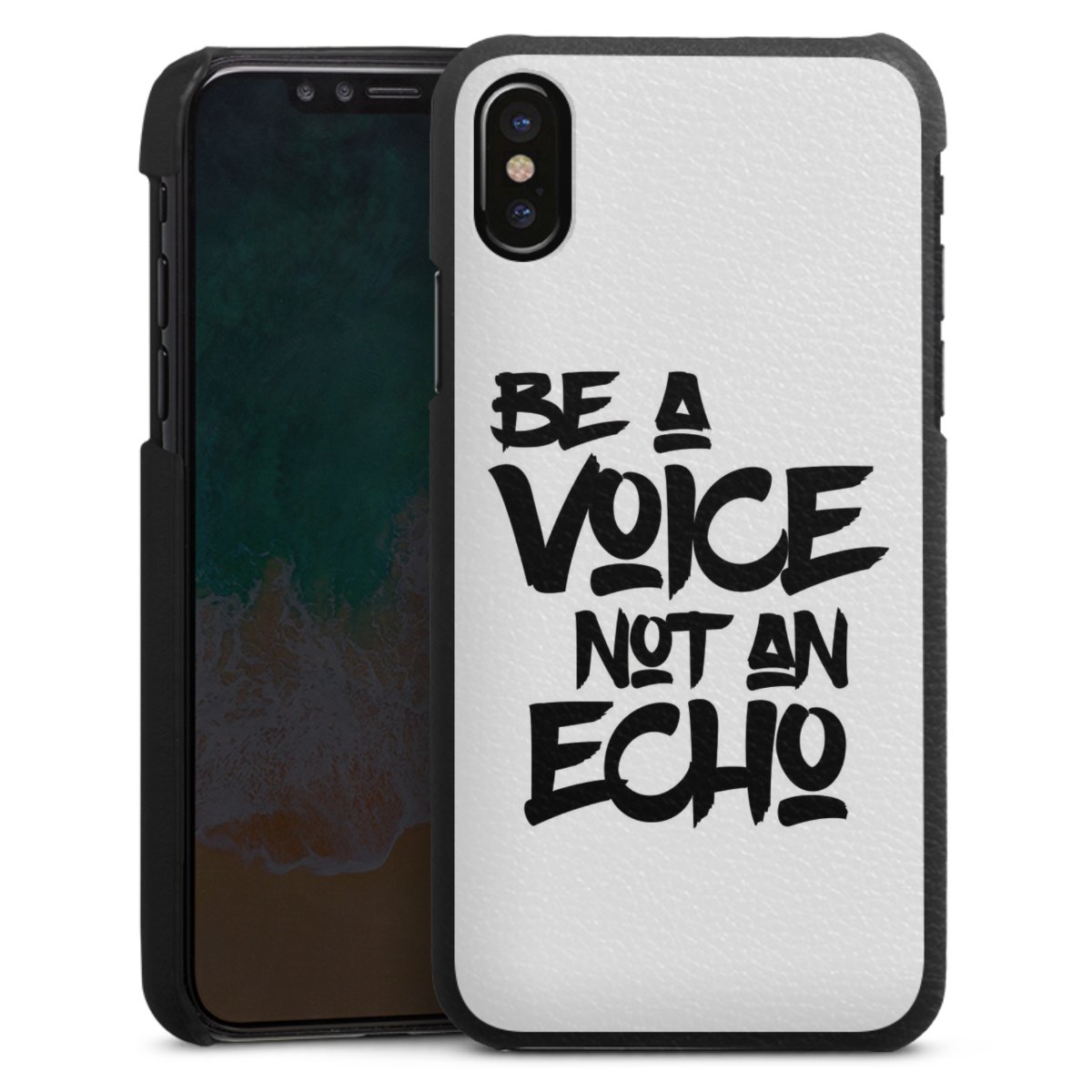 Die handgefertigte Handyhülle besteht außen aus hochwertigen Echtleder-Fasern, die Innenseite besteht aus stabilem Polycarbonat mit einer edlen Softtouch Beschichtung. Durch die Lederstruktur auf der Außenseite liegt das zeitlose Modell griffig in der Hand. Die Handyhülle ist in den Farben Schwarz, Weiß und Braun erhältlich.