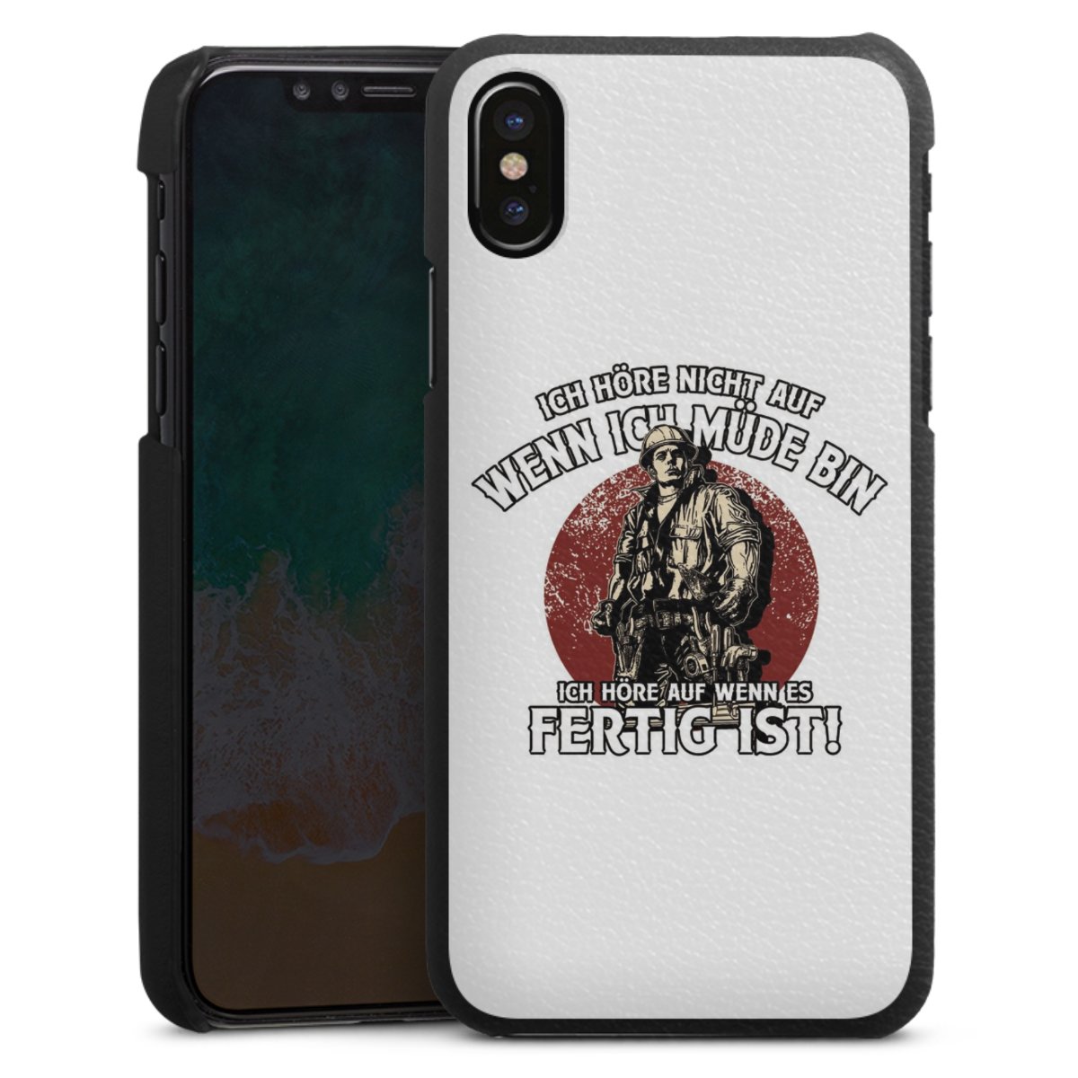 Die handgefertigte Handyhülle besteht außen aus hochwertigen Echtleder-Fasern, die Innenseite besteht aus stabilem Polycarbonat mit einer edlen Softtouch Beschichtung. Durch die Lederstruktur auf der Außenseite liegt das zeitlose Modell griffig in der Hand. Die Handyhülle ist in den Farben Schwarz, Weiß und Braun erhältlich.