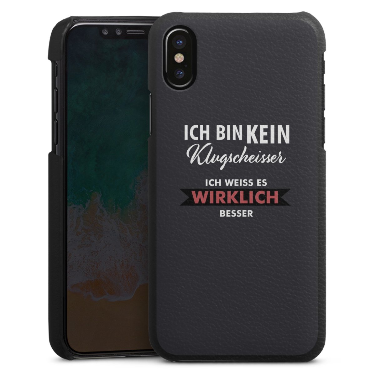 Die handgefertigte Handyhülle besteht außen aus hochwertigen Echtleder-Fasern, die Innenseite besteht aus stabilem Polycarbonat mit einer edlen Softtouch Beschichtung. Durch die Lederstruktur auf der Außenseite liegt das zeitlose Modell griffig in der Hand. Die Handyhülle ist in den Farben Schwarz, Weiß und Braun erhältlich.