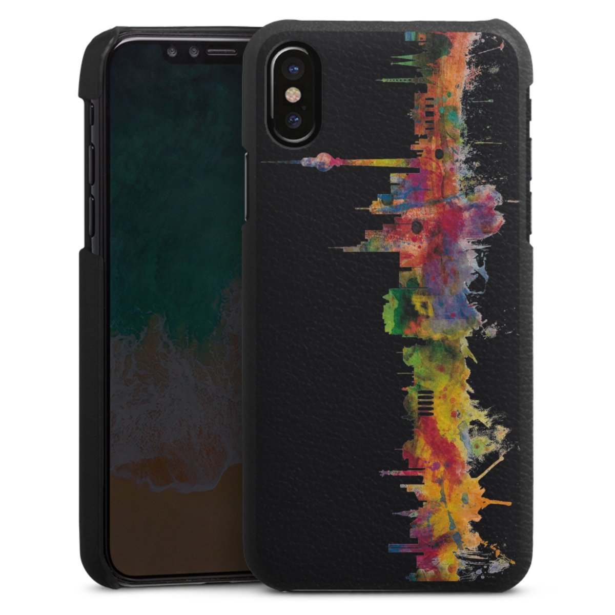 Die handgefertigte Handyhülle besteht außen aus hochwertigen Echtleder-Fasern, die Innenseite besteht aus stabilem Polycarbonat mit einer edlen Softtouch Beschichtung. Durch die Lederstruktur auf der Außenseite liegt das zeitlose Modell griffig in der Hand. Die Handyhülle ist in den Farben Schwarz, Weiß und Braun erhältlich.