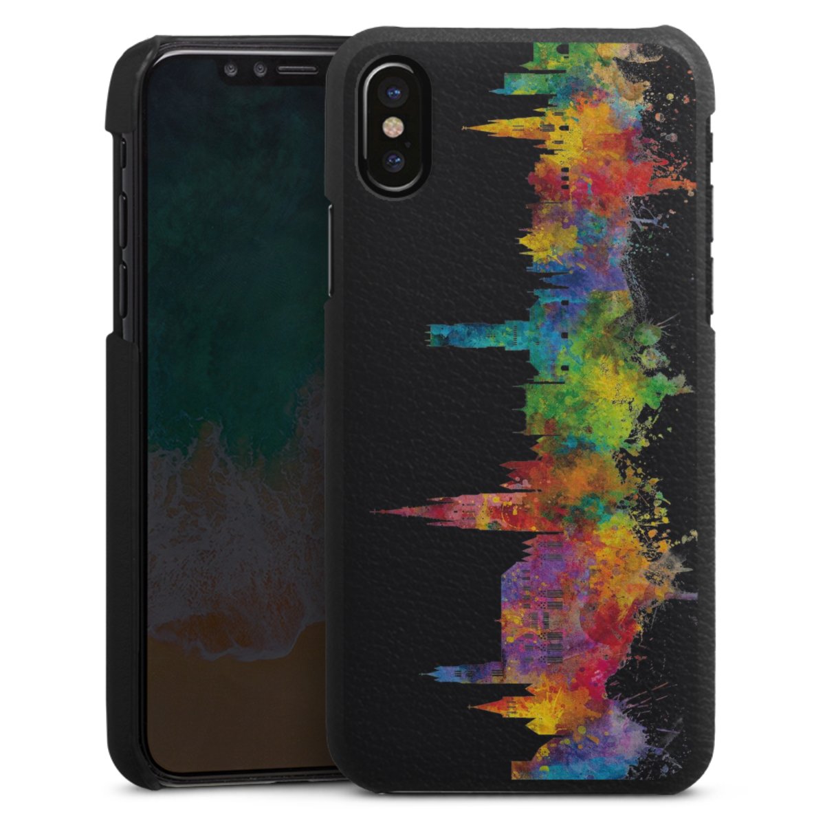 Die handgefertigte Handyhülle besteht außen aus hochwertigen Echtleder-Fasern, die Innenseite besteht aus stabilem Polycarbonat mit einer edlen Softtouch Beschichtung. Durch die Lederstruktur auf der Außenseite liegt das zeitlose Modell griffig in der Hand. Die Handyhülle ist in den Farben Schwarz, Weiß und Braun erhältlich.