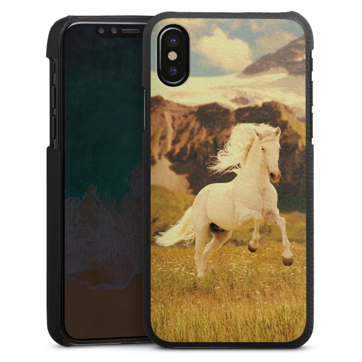Die handgefertigte Handyhülle besteht außen aus hochwertigen Echtleder-Fasern, die Innenseite besteht aus stabilem Polycarbonat mit einer edlen Softtouch Beschichtung. Durch die Lederstruktur auf der Außenseite liegt das zeitlose Modell griffig in der Hand. Die Handyhülle ist in den Farben Schwarz, Weiß und Braun erhältlich.