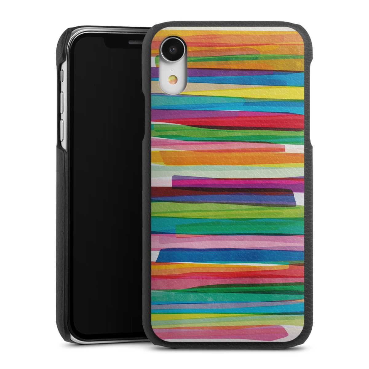 Die handgefertigte Handyhülle besteht außen aus hochwertigen Echtleder-Fasern, die Innenseite besteht aus stabilem Polycarbonat mit einer edlen Softtouch Beschichtung. Durch die Lederstruktur auf der Außenseite liegt das zeitlose Modell griffig in der Hand. Die Handyhülle ist in den Farben Schwarz, Weiß und Braun erhältlich.