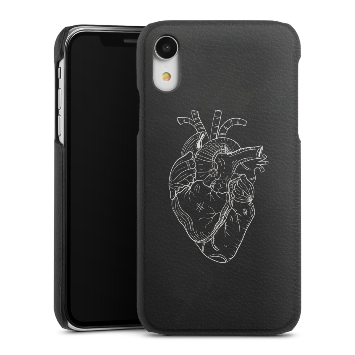 Die handgefertigte Handyhülle besteht außen aus hochwertigen Echtleder-Fasern, die Innenseite besteht aus stabilem Polycarbonat mit einer edlen Softtouch Beschichtung. Durch die Lederstruktur auf der Außenseite liegt das zeitlose Modell griffig in der Hand. Die Handyhülle ist in den Farben Schwarz, Weiß und Braun erhältlich.
