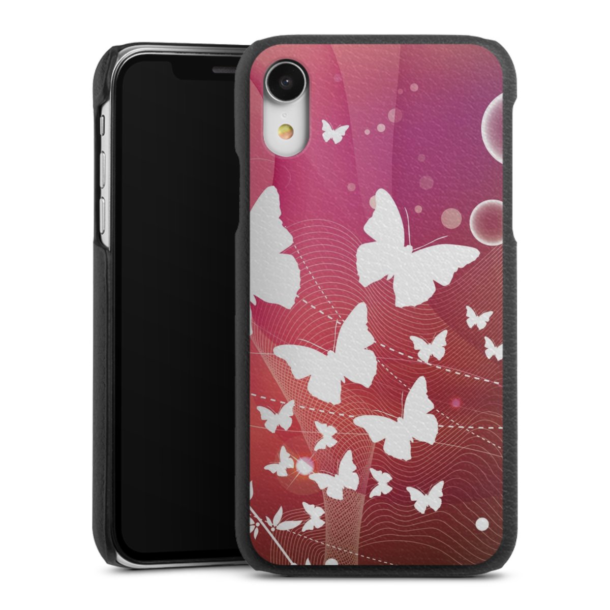 Die handgefertigte Handyhülle besteht außen aus hochwertigen Echtleder-Fasern, die Innenseite besteht aus stabilem Polycarbonat mit einer edlen Softtouch Beschichtung. Durch die Lederstruktur auf der Außenseite liegt das zeitlose Modell griffig in der Hand. Die Handyhülle ist in den Farben Schwarz, Weiß und Braun erhältlich.