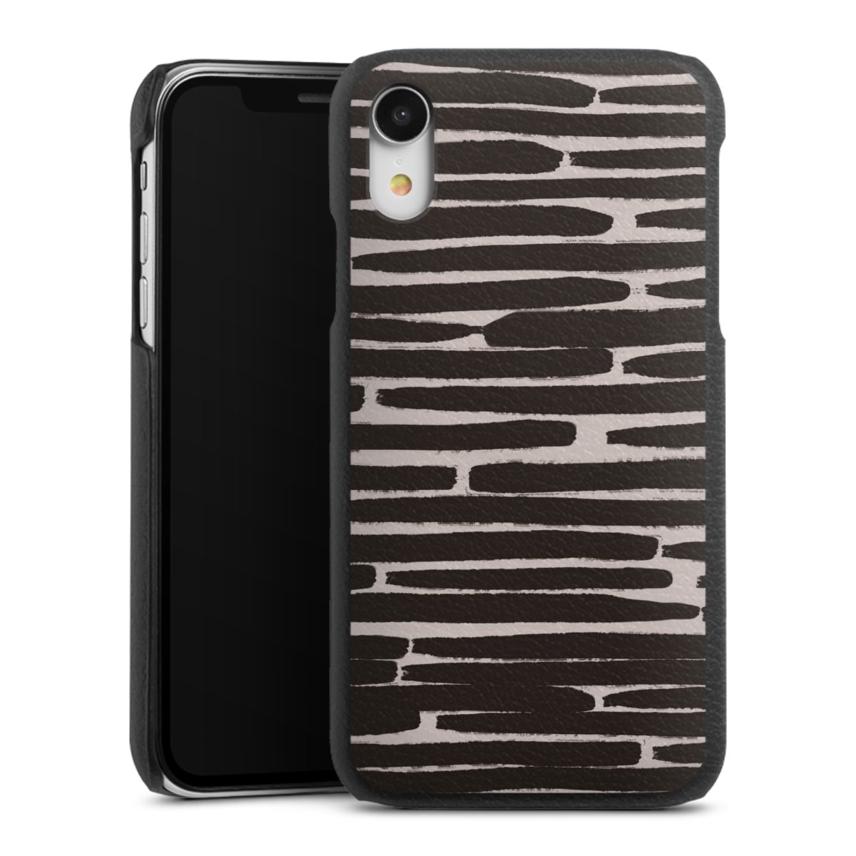 Die handgefertigte Handyhülle besteht außen aus hochwertigen Echtleder-Fasern, die Innenseite besteht aus stabilem Polycarbonat mit einer edlen Softtouch Beschichtung. Durch die Lederstruktur auf der Außenseite liegt das zeitlose Modell griffig in der Hand. Die Handyhülle ist in den Farben Schwarz, Weiß und Braun erhältlich.
