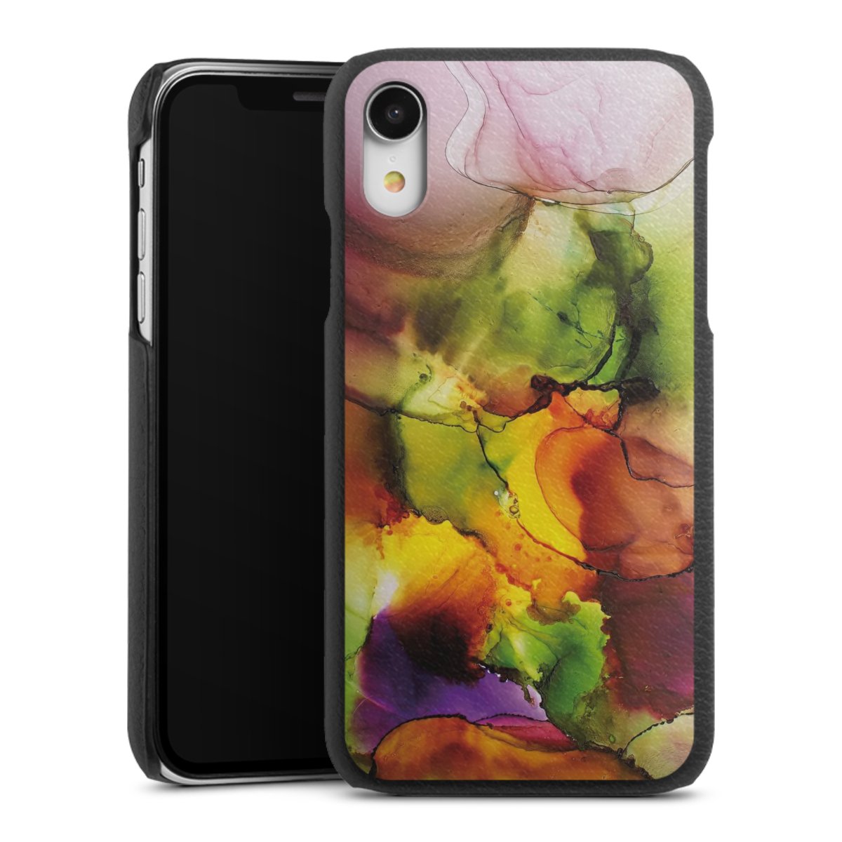 Die handgefertigte Handyhülle besteht außen aus hochwertigen Echtleder-Fasern, die Innenseite besteht aus stabilem Polycarbonat mit einer edlen Softtouch Beschichtung. Durch die Lederstruktur auf der Außenseite liegt das zeitlose Modell griffig in der Hand. Die Handyhülle ist in den Farben Schwarz, Weiß und Braun erhältlich.