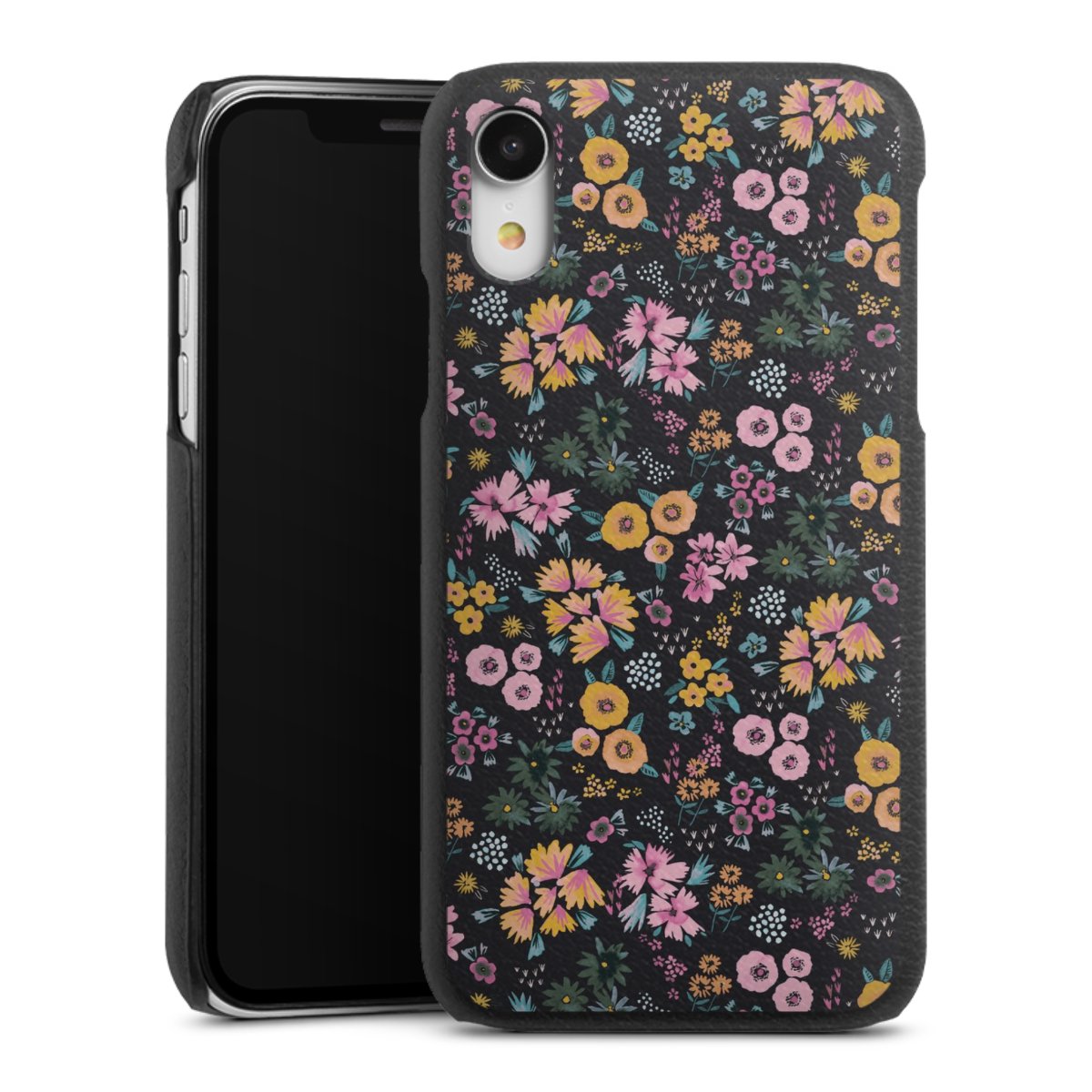 Kleine bunte Blumen Schwarz 2