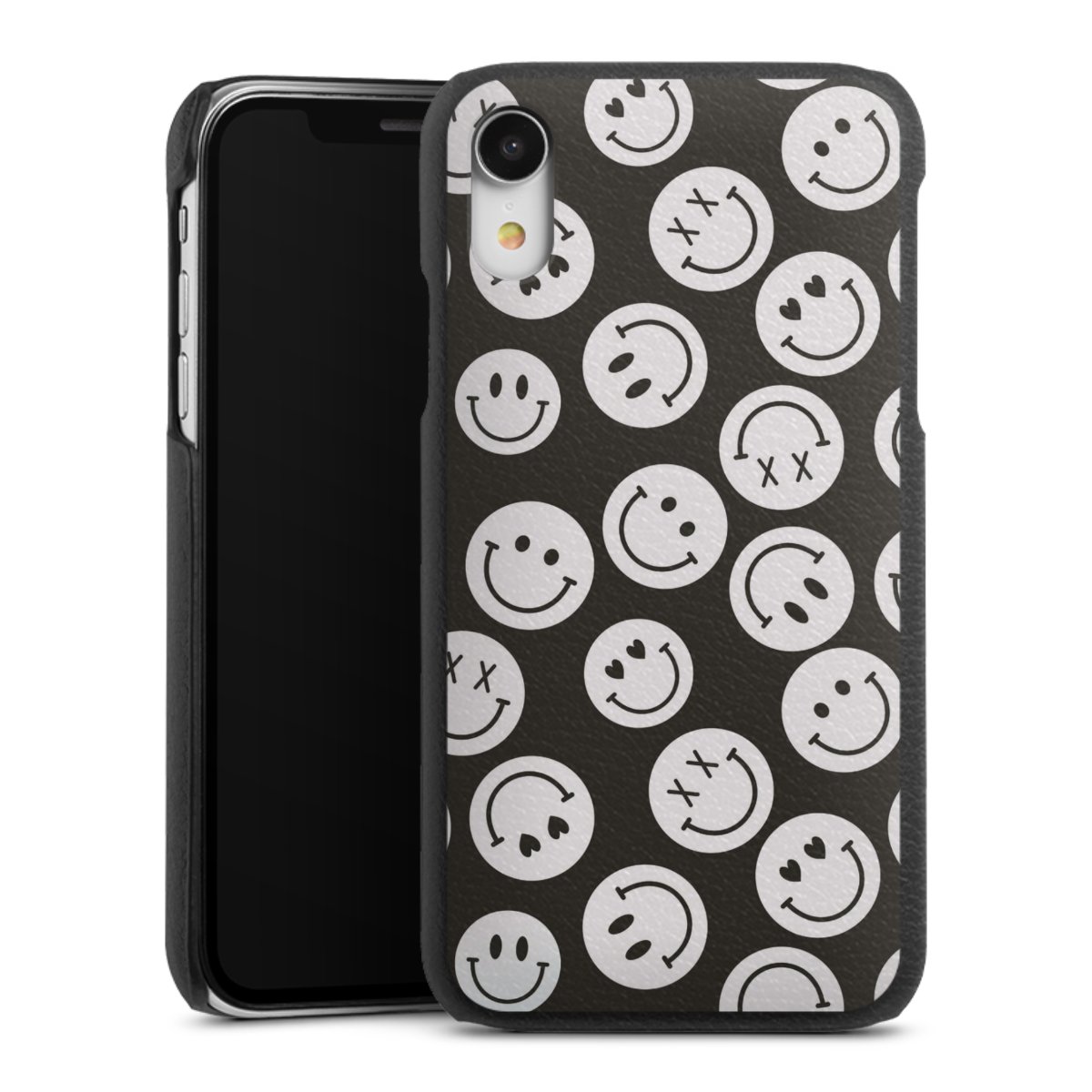 Die handgefertigte Handyhülle besteht außen aus hochwertigen Echtleder-Fasern, die Innenseite besteht aus stabilem Polycarbonat mit einer edlen Softtouch Beschichtung. Durch die Lederstruktur auf der Außenseite liegt das zeitlose Modell griffig in der Hand. Die Handyhülle ist in den Farben Schwarz, Weiß und Braun erhältlich.