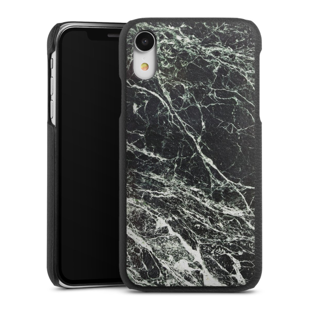 Die handgefertigte Handyhülle besteht außen aus hochwertigen Echtleder-Fasern, die Innenseite besteht aus stabilem Polycarbonat mit einer edlen Softtouch Beschichtung. Durch die Lederstruktur auf der Außenseite liegt das zeitlose Modell griffig in der Hand. Die Handyhülle ist in den Farben Schwarz, Weiß und Braun erhältlich.
