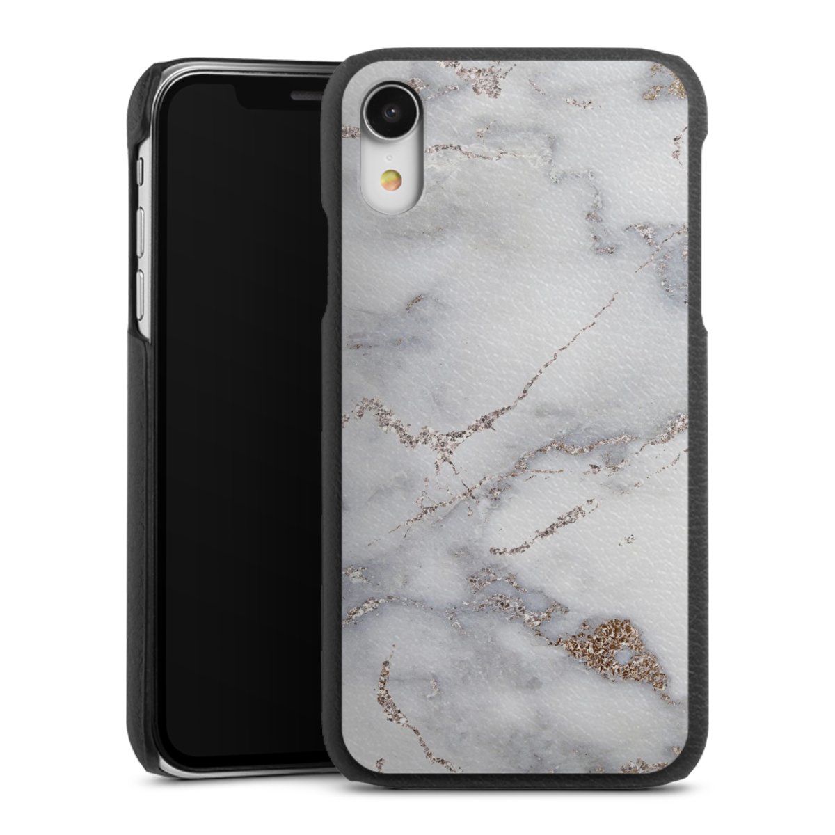 Die handgefertigte Handyhülle besteht außen aus hochwertigen Echtleder-Fasern, die Innenseite besteht aus stabilem Polycarbonat mit einer edlen Softtouch Beschichtung. Durch die Lederstruktur auf der Außenseite liegt das zeitlose Modell griffig in der Hand. Die Handyhülle ist in den Farben Schwarz, Weiß und Braun erhältlich.