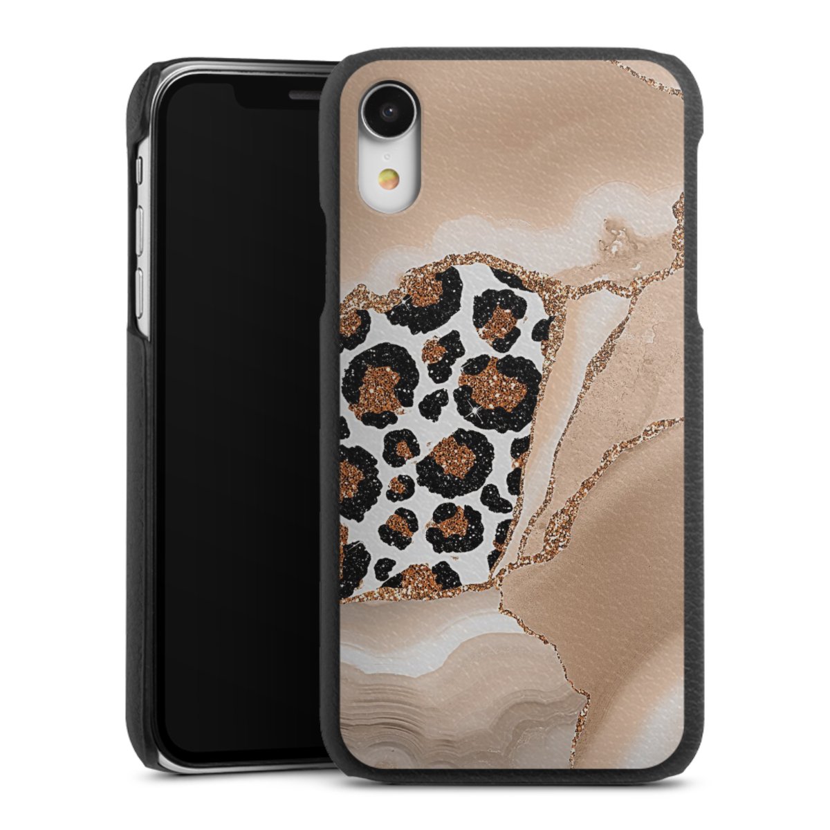 Die handgefertigte Handyhülle besteht außen aus hochwertigen Echtleder-Fasern, die Innenseite besteht aus stabilem Polycarbonat mit einer edlen Softtouch Beschichtung. Durch die Lederstruktur auf der Außenseite liegt das zeitlose Modell griffig in der Hand. Die Handyhülle ist in den Farben Schwarz, Weiß und Braun erhältlich.