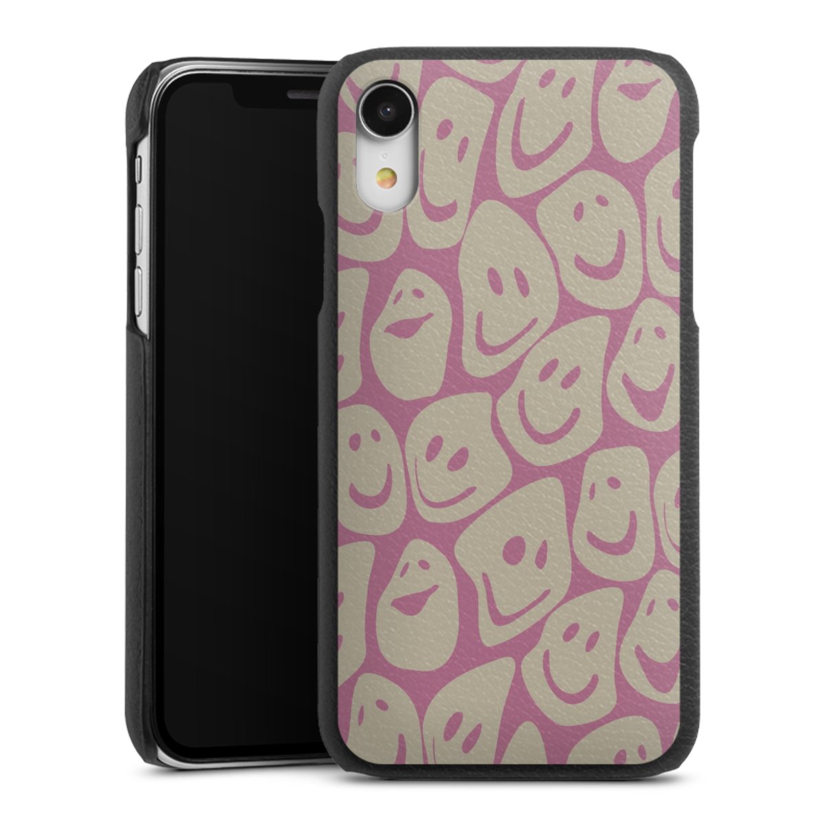 Die handgefertigte Handyhülle besteht außen aus hochwertigen Echtleder-Fasern, die Innenseite besteht aus stabilem Polycarbonat mit einer edlen Softtouch Beschichtung. Durch die Lederstruktur auf der Außenseite liegt das zeitlose Modell griffig in der Hand. Die Handyhülle ist in den Farben Schwarz, Weiß und Braun erhältlich.