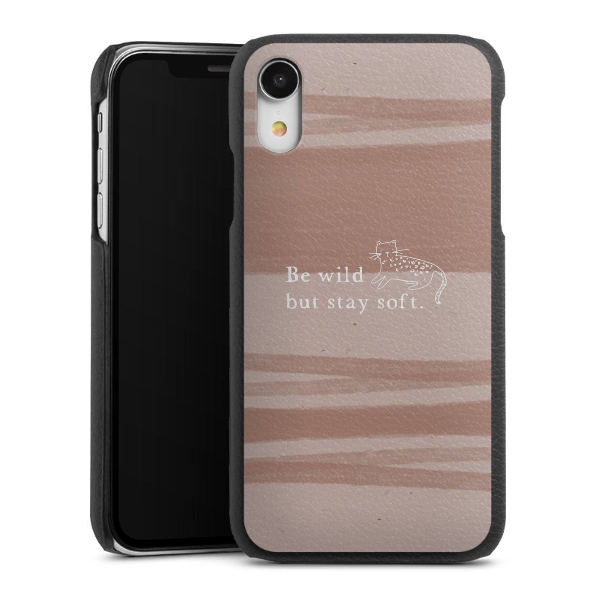 Die handgefertigte Handyhülle besteht außen aus hochwertigen Echtleder-Fasern, die Innenseite besteht aus stabilem Polycarbonat mit einer edlen Softtouch Beschichtung. Durch die Lederstruktur auf der Außenseite liegt das zeitlose Modell griffig in der Hand. Die Handyhülle ist in den Farben Schwarz, Weiß und Braun erhältlich.
