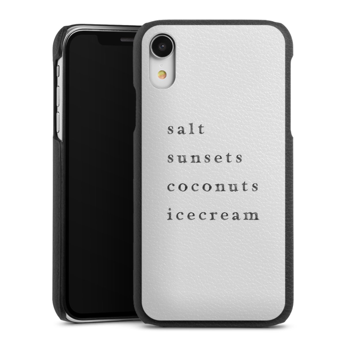 Die handgefertigte Handyhülle besteht außen aus hochwertigen Echtleder-Fasern, die Innenseite besteht aus stabilem Polycarbonat mit einer edlen Softtouch Beschichtung. Durch die Lederstruktur auf der Außenseite liegt das zeitlose Modell griffig in der Hand. Die Handyhülle ist in den Farben Schwarz, Weiß und Braun erhältlich.