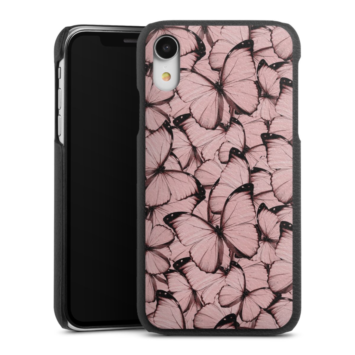 Die handgefertigte Handyhülle besteht außen aus hochwertigen Echtleder-Fasern, die Innenseite besteht aus stabilem Polycarbonat mit einer edlen Softtouch Beschichtung. Durch die Lederstruktur auf der Außenseite liegt das zeitlose Modell griffig in der Hand. Die Handyhülle ist in den Farben Schwarz, Weiß und Braun erhältlich.