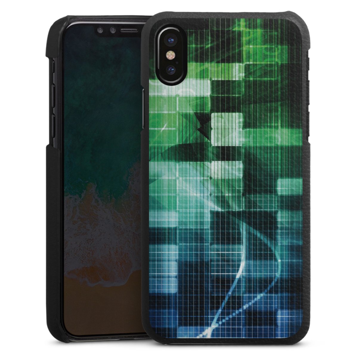 Die handgefertigte Handyhülle besteht außen aus hochwertigen Echtleder-Fasern, die Innenseite besteht aus stabilem Polycarbonat mit einer edlen Softtouch Beschichtung. Durch die Lederstruktur auf der Außenseite liegt das zeitlose Modell griffig in der Hand. Die Handyhülle ist in den Farben Schwarz, Weiß und Braun erhältlich.