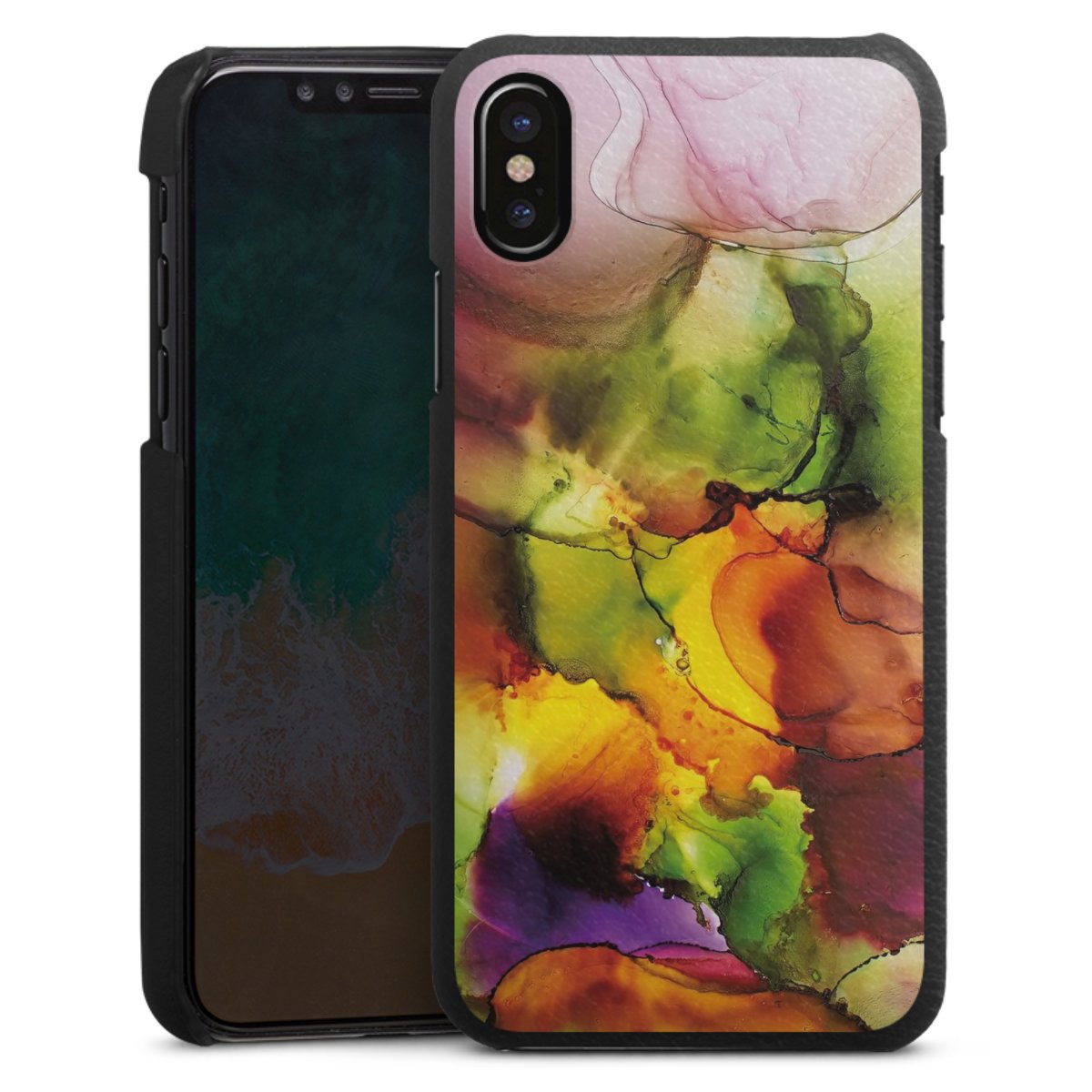 Die handgefertigte Handyhülle besteht außen aus hochwertigen Echtleder-Fasern, die Innenseite besteht aus stabilem Polycarbonat mit einer edlen Softtouch Beschichtung. Durch die Lederstruktur auf der Außenseite liegt das zeitlose Modell griffig in der Hand. Die Handyhülle ist in den Farben Schwarz, Weiß und Braun erhältlich.