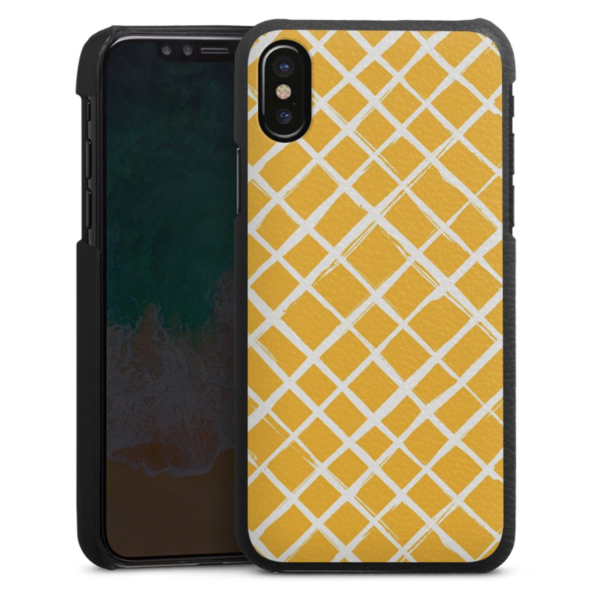 Die handgefertigte Handyhülle besteht außen aus hochwertigen Echtleder-Fasern, die Innenseite besteht aus stabilem Polycarbonat mit einer edlen Softtouch Beschichtung. Durch die Lederstruktur auf der Außenseite liegt das zeitlose Modell griffig in der Hand. Die Handyhülle ist in den Farben Schwarz, Weiß und Braun erhältlich.