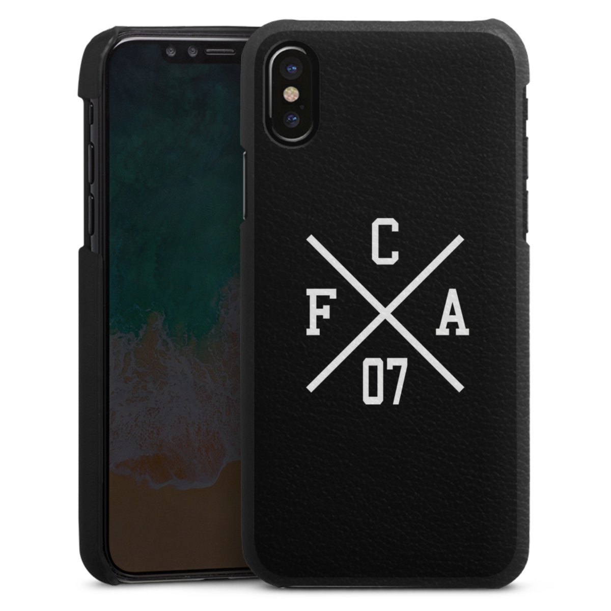 Die handgefertigte Handyhülle besteht außen aus hochwertigen Echtleder-Fasern, die Innenseite besteht aus stabilem Polycarbonat mit einer edlen Softtouch Beschichtung. Durch die Lederstruktur auf der Außenseite liegt das zeitlose Modell griffig in der Hand. Die Handyhülle ist in den Farben Schwarz, Weiß und Braun erhältlich.