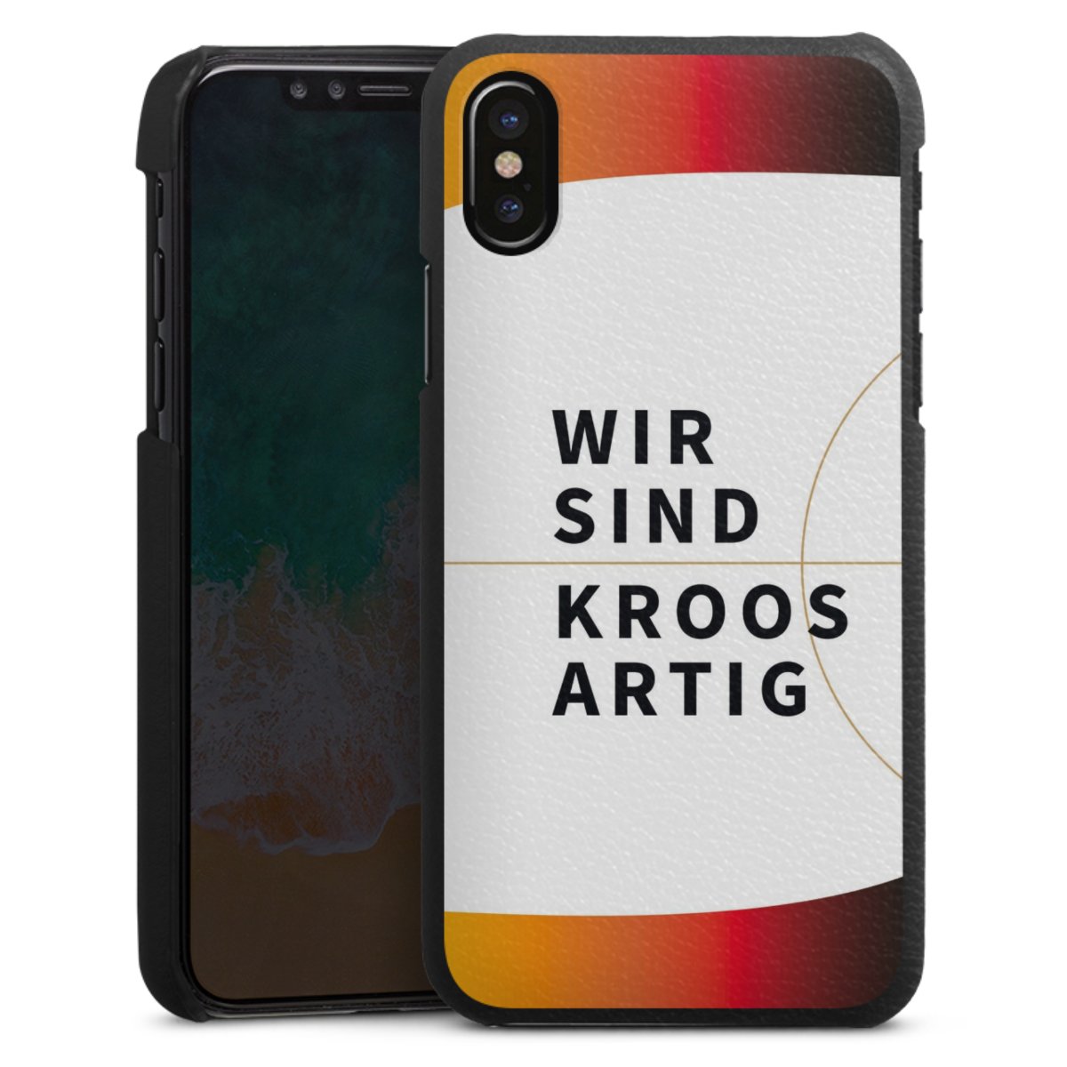 Die handgefertigte Handyhülle besteht außen aus hochwertigen Echtleder-Fasern, die Innenseite besteht aus stabilem Polycarbonat mit einer edlen Softtouch Beschichtung. Durch die Lederstruktur auf der Außenseite liegt das zeitlose Modell griffig in der Hand. Die Handyhülle ist in den Farben Schwarz, Weiß und Braun erhältlich.