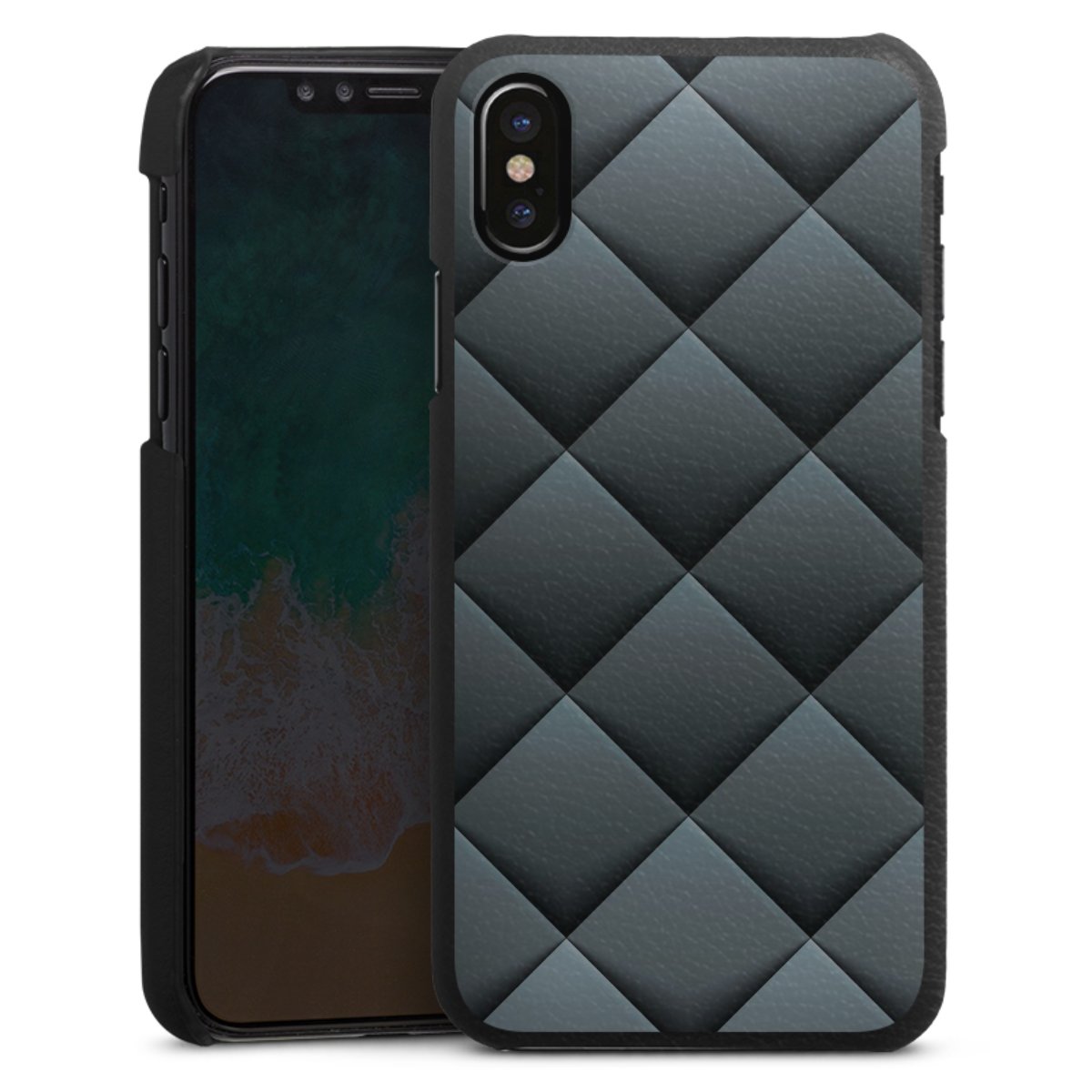 Die handgefertigte Handyhülle besteht außen aus hochwertigen Echtleder-Fasern, die Innenseite besteht aus stabilem Polycarbonat mit einer edlen Softtouch Beschichtung. Durch die Lederstruktur auf der Außenseite liegt das zeitlose Modell griffig in der Hand. Die Handyhülle ist in den Farben Schwarz, Weiß und Braun erhältlich.